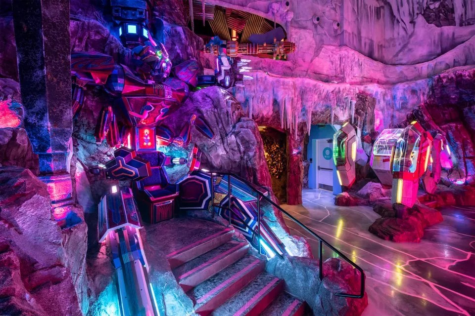 Upon entering the icy world of Eemia with its colorful Kaleidegothic Cathedral, you can’t miss the two robots that offer thrones designed by the brain behind Eemia, Matt King, a co-founder of Meow Wolf who passed away in July. From these seats, you can play with various controls and buttons and control the lasers that reflect in the celestial ceiling — and you might even end up opening a wormhole. Since no kids will be around, this will be a good time to fully check out the cathedral; depending on your mindset, it might make you think of a psychedelic, mini-Hagia Sofia built by aliens.