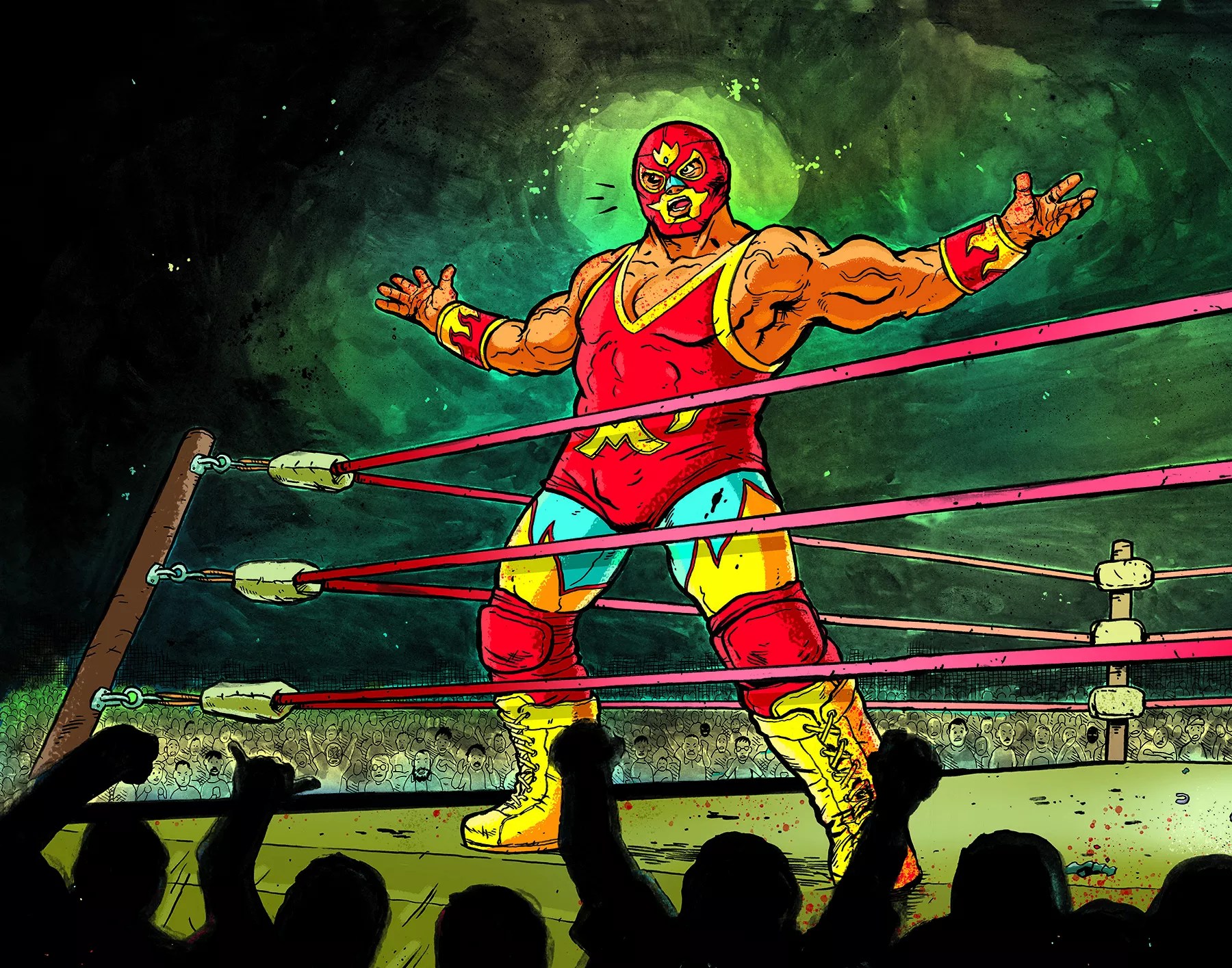 Milagro is certainly a unique idea. He’s a famous luchador who accidentally kills his mentor in the ring while in a drug-fueled rage and, now disgraced, roams the streets of Mexico City in shame. Occasionally, if somewhat begrudgingly, he helps out others in an effort to make amends and find redemption. He has no superpowers; he’s just a badass. And he never takes off the mask.