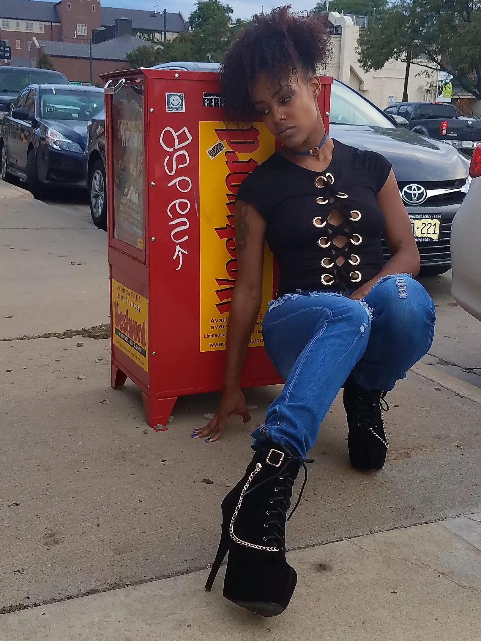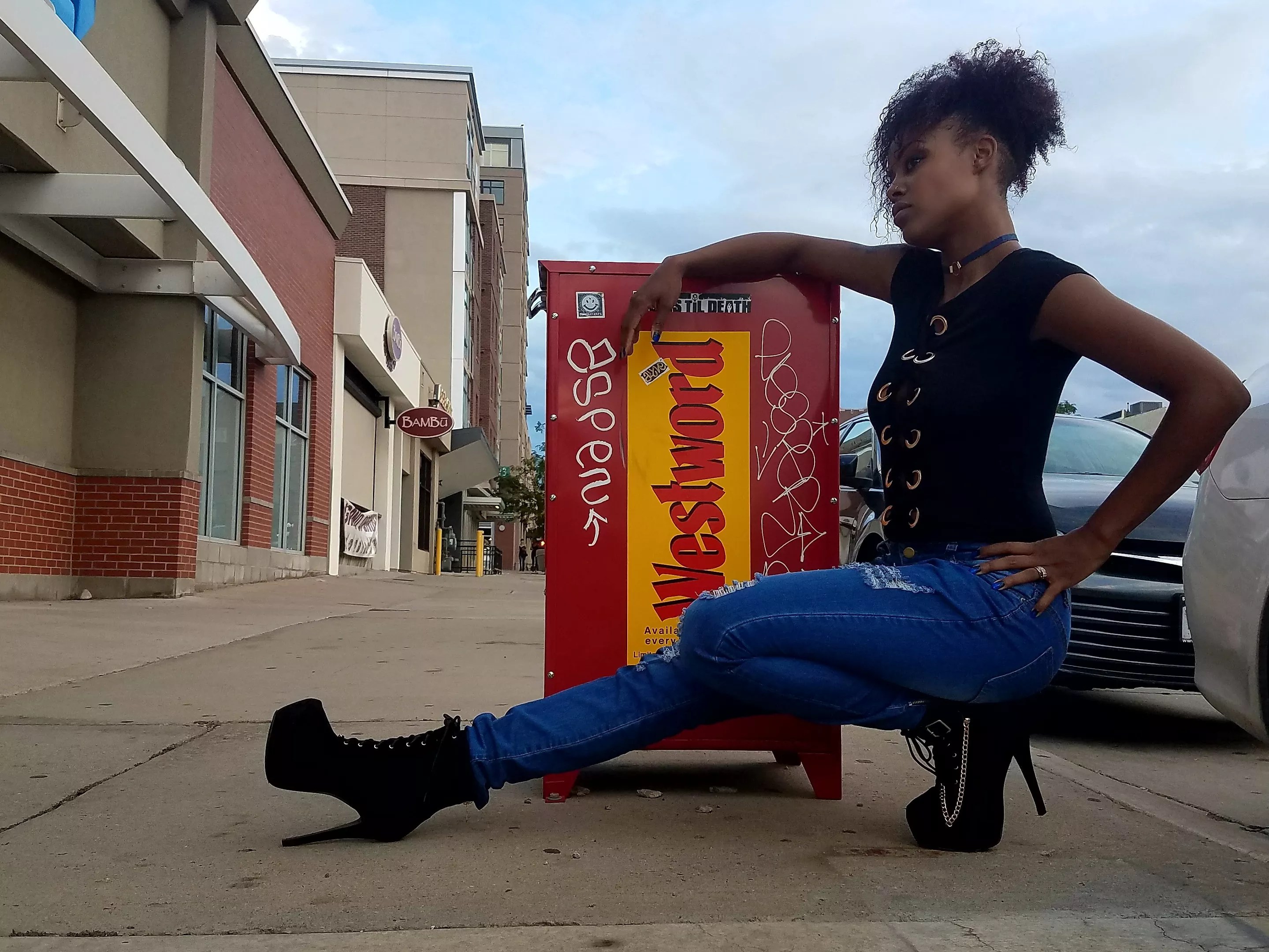 Some models have great style both on and off the runway, a point emphasized when we saw this Denver-based model looking chic in front of a Westword box. Alicia Myers is an investigative analyst and part-time model; originally from San Diego, she came to Denver by way of South Carolina. We stopped to chat with her about her style, which she describes as “casual, unique and edgy.”