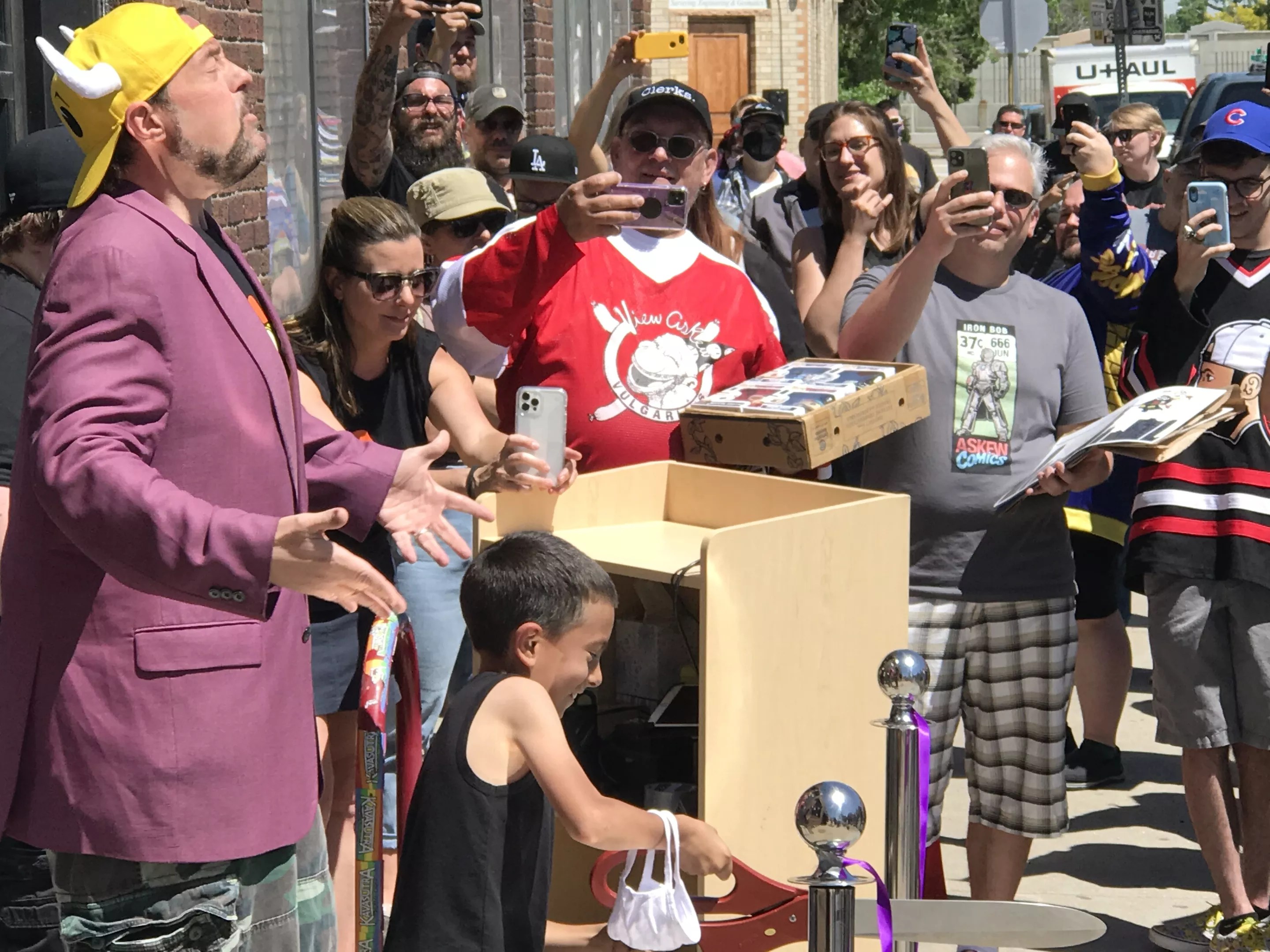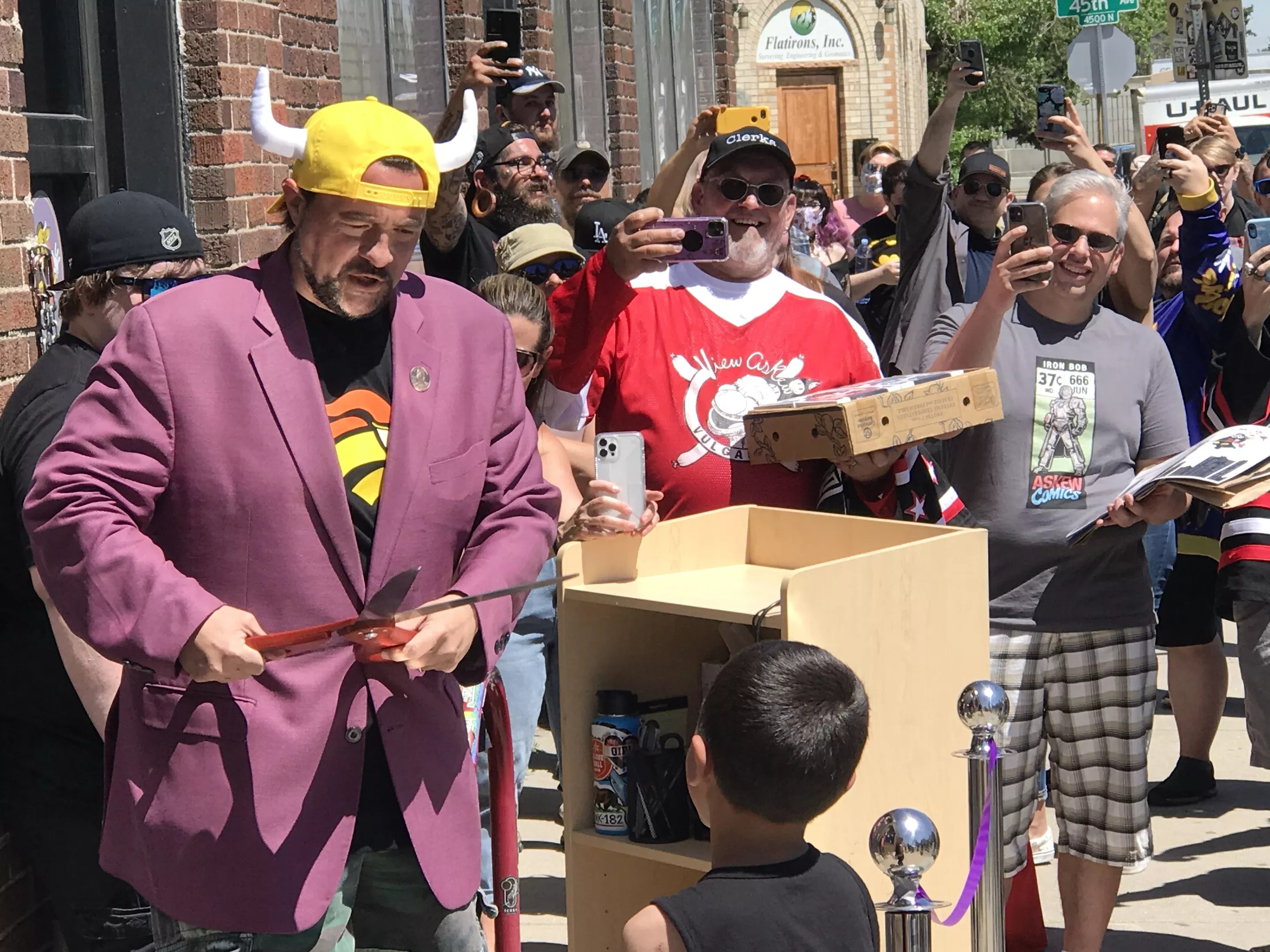 Kevin Smith was squeezing in the appearance amid nonstop movie-making. He flew into Denver International Airport only an hour ahead of the ribbon-cutting, and planned to be in town only until early afternoon, when he’d be carted back up Peña Boulevard to fly out again. But the gathered crowd appreciated the appearance, cheering when the SUV pulled up with Smith in the passenger seat.