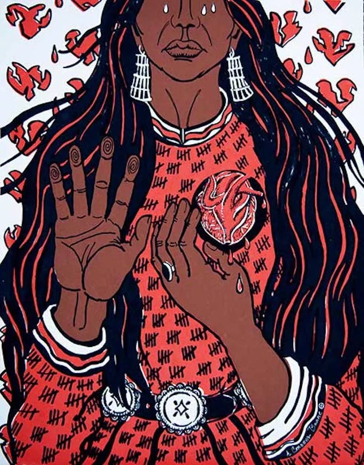 Half of the sixteen women participating in this portfolio exchange are of Indigenous heritage, invited by acclaimed artist Melanie Yazzie, a print educator at CU Boulder, while the other eight are of mixed background, invited by Catherine Prose of Midwestern State University. All together, the group is bent on opening up a conversation about missing and murdered indigenous women. The resulting group print series kickstarts that discussion. Yazzie and fellow participating artist Sylvia Montero will give an artist talk on March 12 following a formal opening reception for the show, which runs through the end of March.