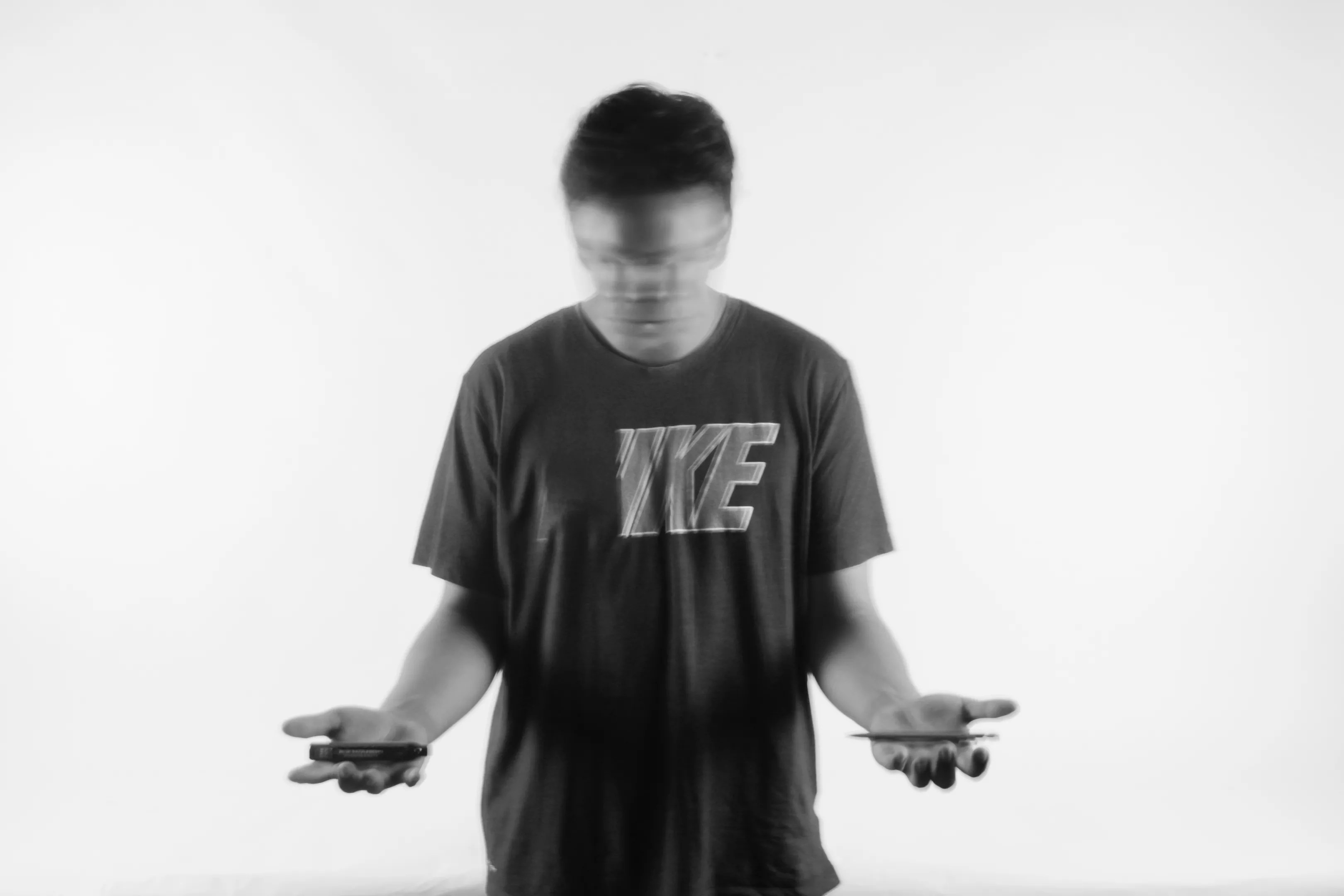 “Vaped and Hollow” became the genesis moment for a lot more art from students dealing with the subject of addiction and vaping. Another student, Matthew Trujillo, wanted to illustrate how hard it is to decide between addiction and education. “So he had a vape pen in one hand, and a school pen in the other, and with a slow shutter speed, he created an image of his head moving back and forth like he’s weighing those two options.” That piece won a Gold Key, as well.