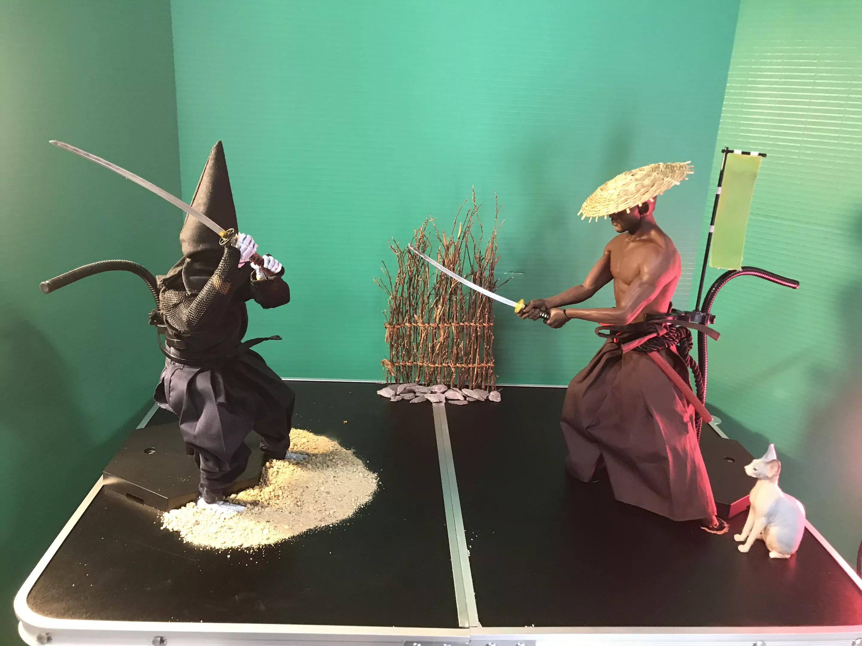 When he’s not dressing up dolls in bizarre outfits and staging their gruesome deaths, Glen is breathlessly spitballing the movie’s plot. Musa and Glen will be depicted as samurai warriors fighting against evil, Klan-like ninjas who represent racism, economic violence and all of the other ills confronting Black fathers and sons in the United States.