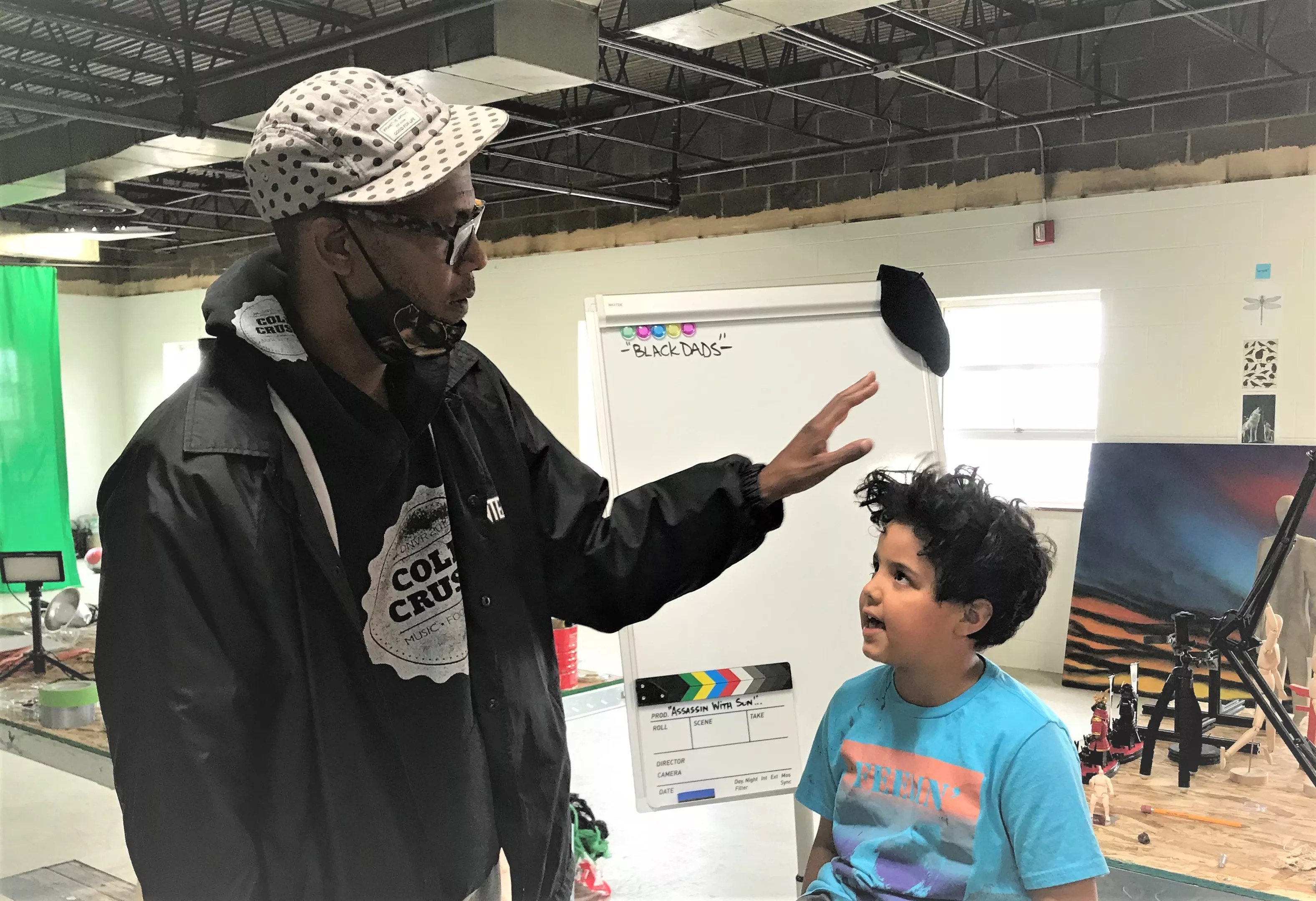 The warehouse, near the I-25 and I-70 interchange, was purchased in 2020 by developers Ken Wolf and Ari Stutz. But construction on their proposed project is years away, and the developers, both backers of the arts, worked out a deal so that Musa and his seven-year-old son, Glen, could use the building while they shoot a samurai-themed, hip-hop stop-motion animation about Black fatherhood called Assassin With Son.