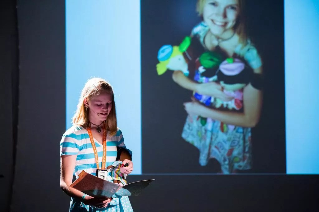 Olivia Borden presents her doll-making company to Failure Fair judges.