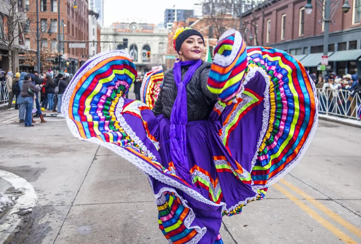 Colorful dresses and Mexican folk dances are a parade highlight.