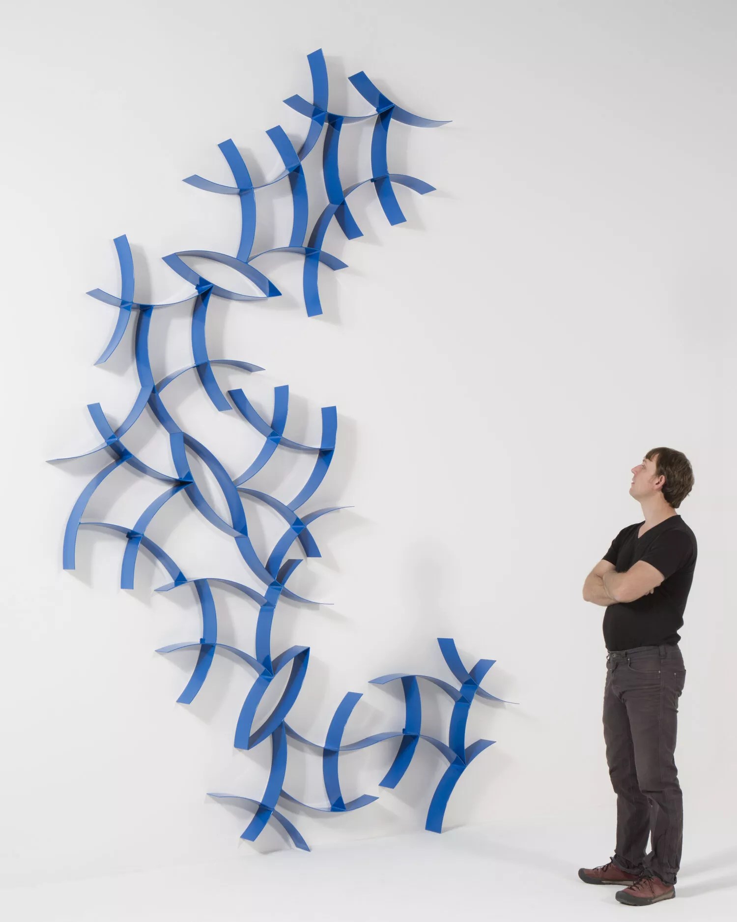 Morgan Robinson, “Curves (Light Blue),” powder-coated steel, eight components.