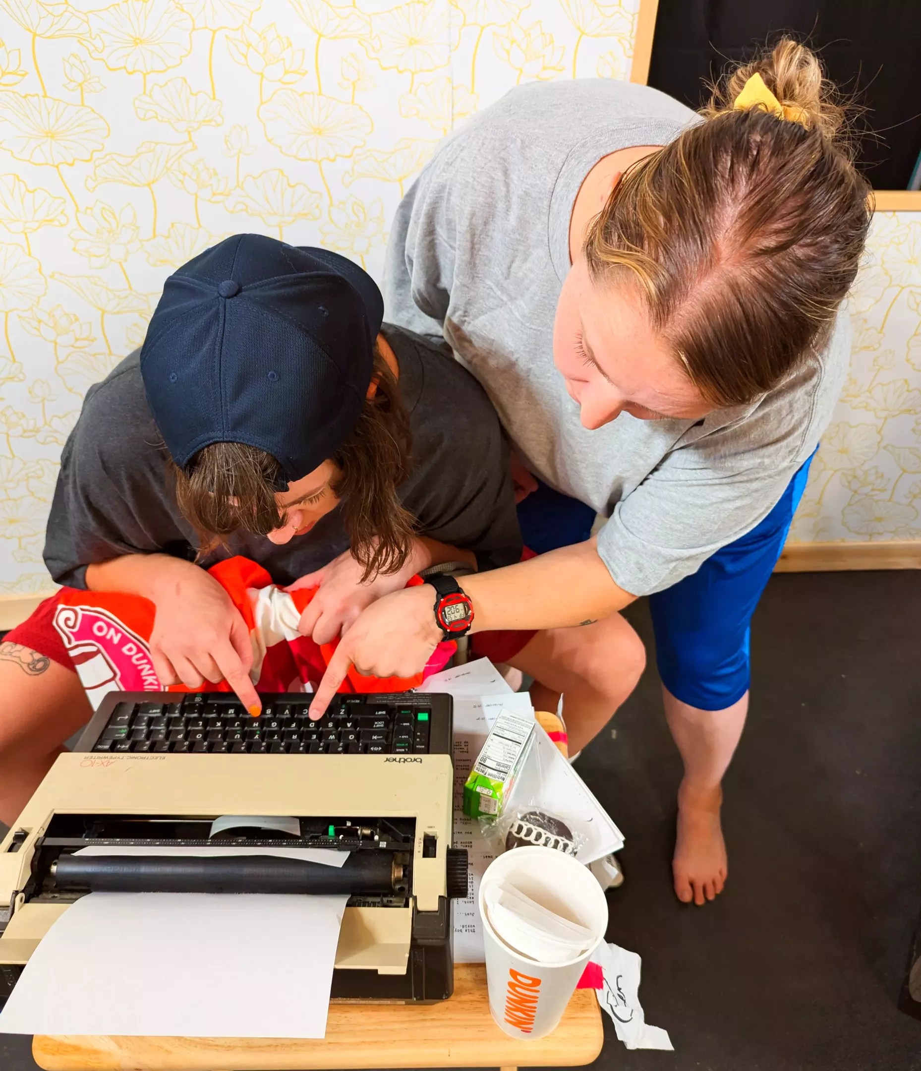 In an intimate garage space, surrounded by a School Ties poster, a 1990s headshot of J.Lo and other makeshift set pieces, Jo McIver Lee and Em Perez rehearsed for their latest roles: Matt Damon and Ben Affleck.