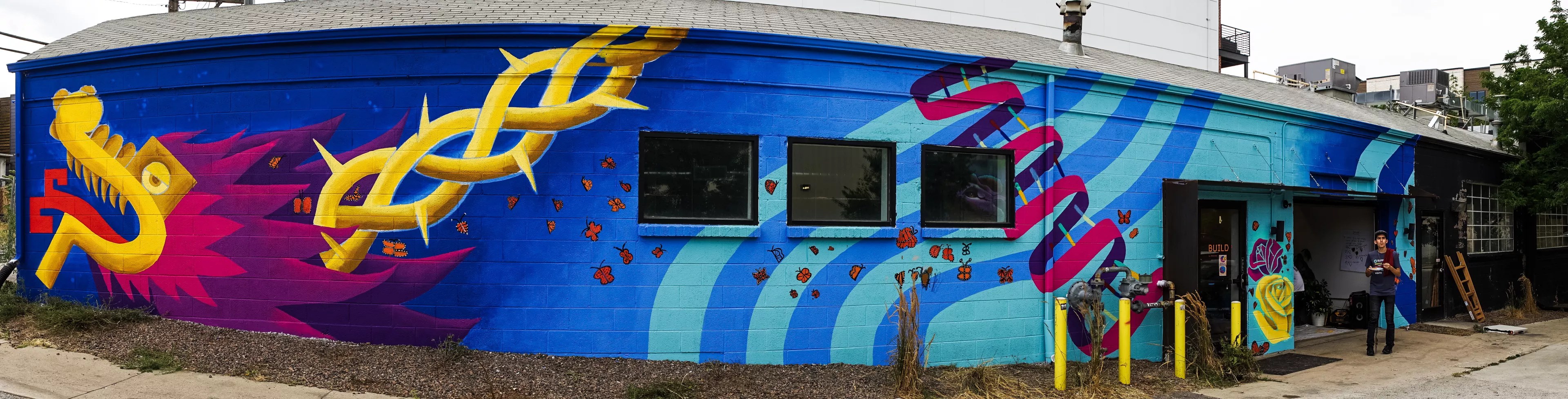 “La Serpiente Dorada,” a new mural depicting the immigrant journey, was revealed on 33rd and Larimer streets this past weekend. Painted by Colorado “artivist” Diego Florez-Arroyo in collaboration with Convivir, a sixth-through-twelfth-grade program for refugee and immigrant children, the artwork adds a vibrant story to the Five Points neighborhood.