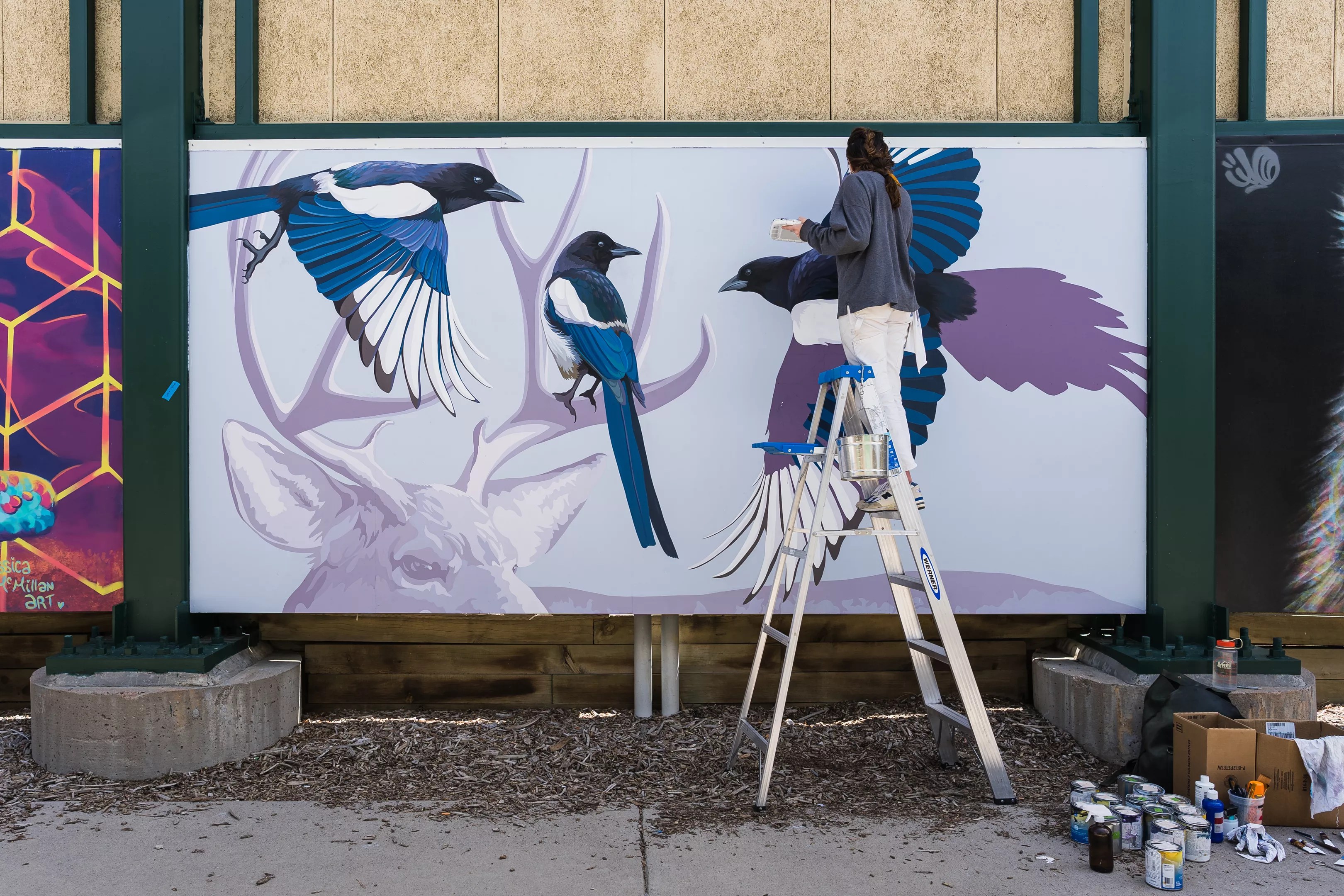 He also helped select the other artists involved in the project, including Catie Michel, who painted magpies flitting over a buck.