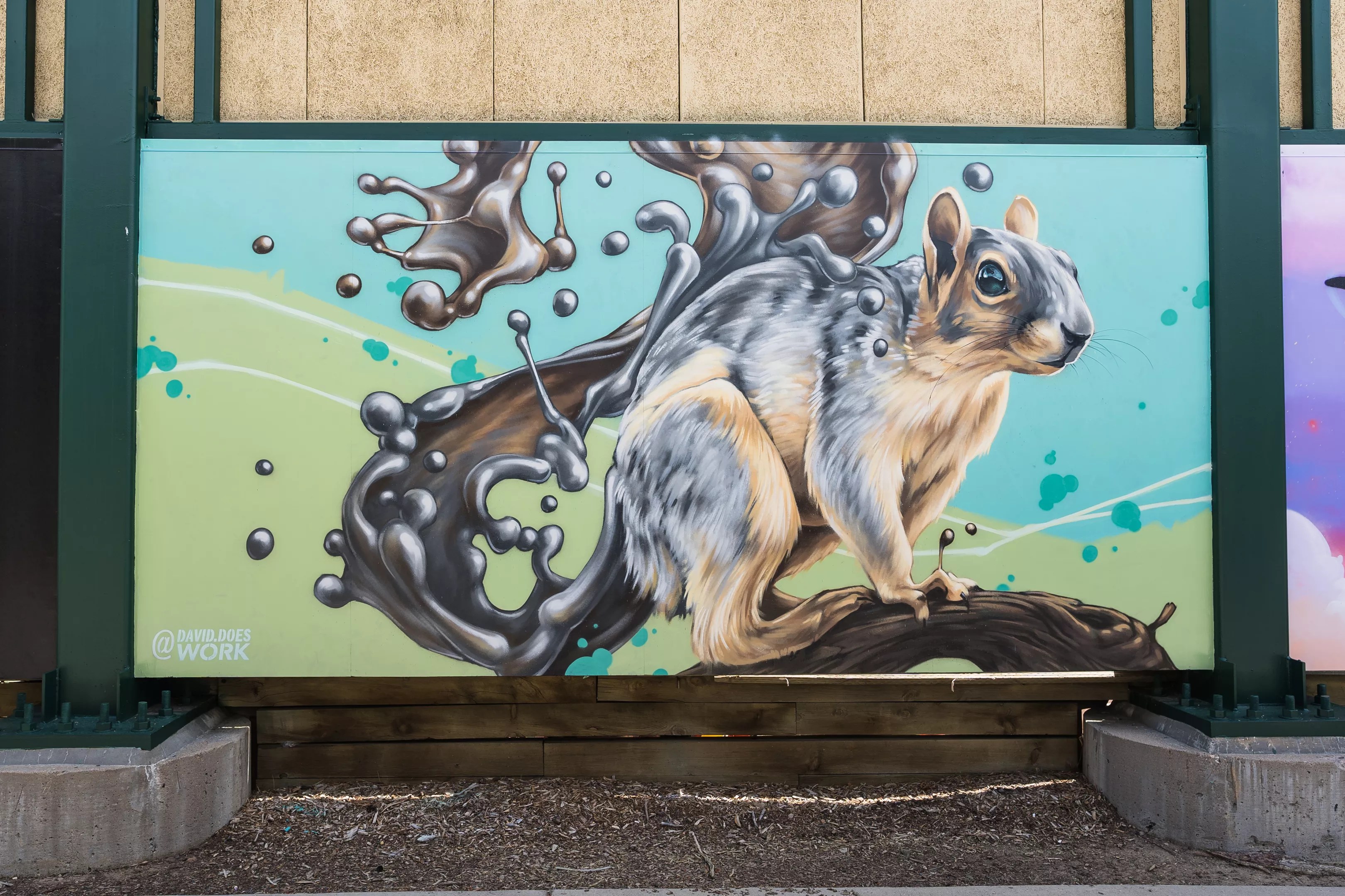 David Swartz of the famed Swartz Brothers mural team painted a squirrel, with the animal’s body seamlessly transitioning into water-like forms.