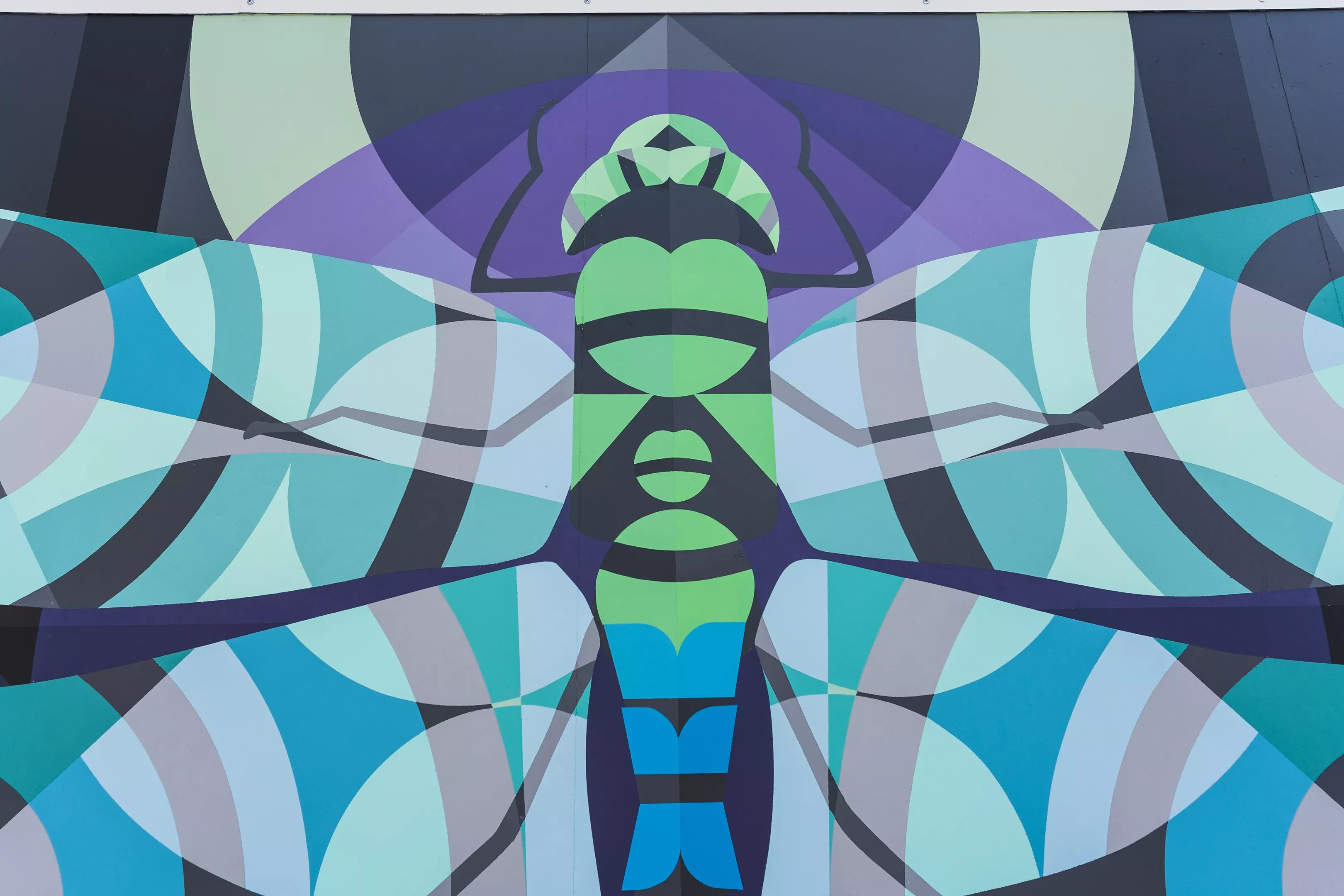 Jason T Graves‘s illustration of a dragonfly is another stylistic standout, with the insect revealing itself through the artist’s notable geometric forms and muted, soothing colors.