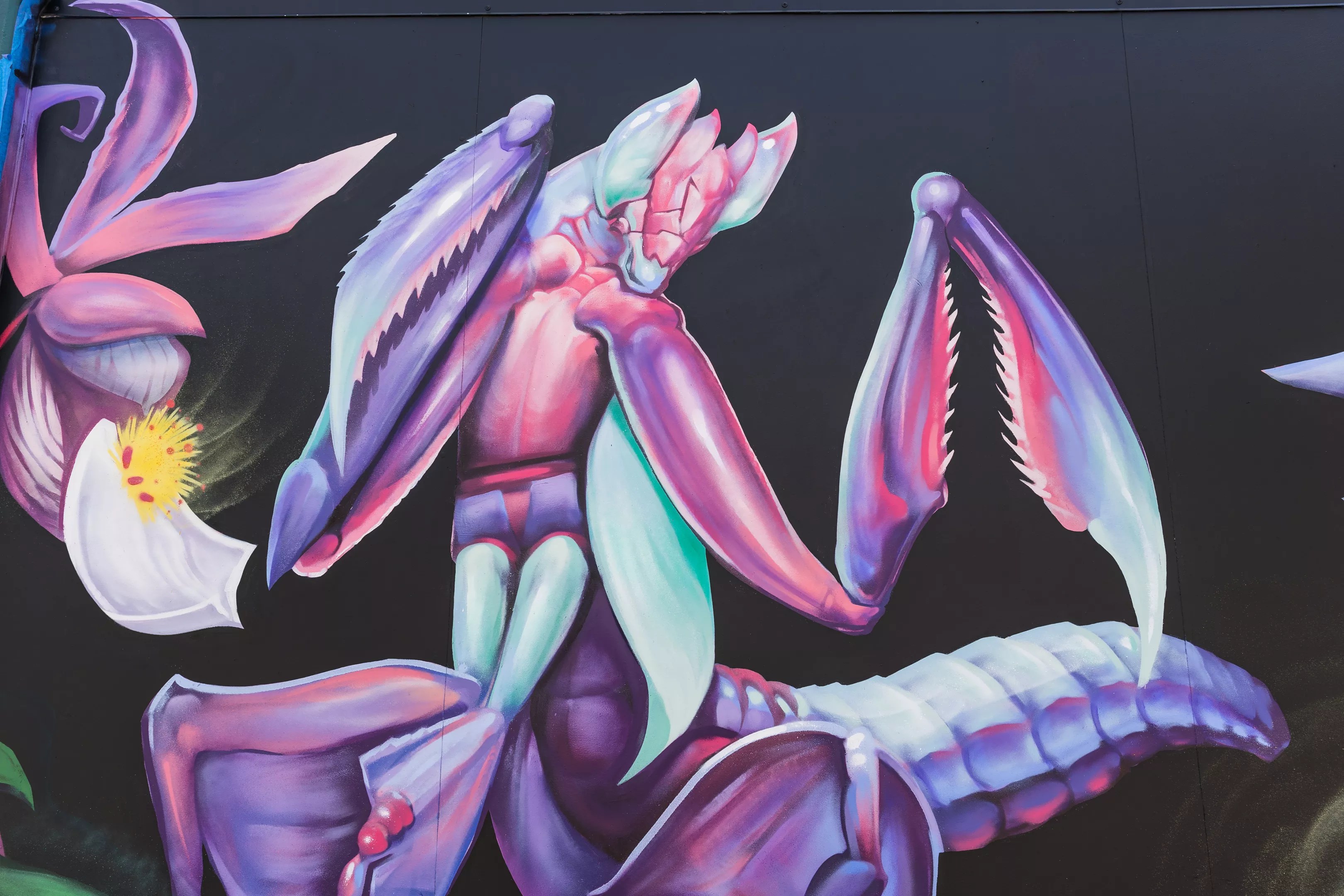 Will Barker painted one of Colorado’s most notable animals, a bison, while ESIC (aka Zach Howard) made a striking praying mantis in teal, purple and pink hues.