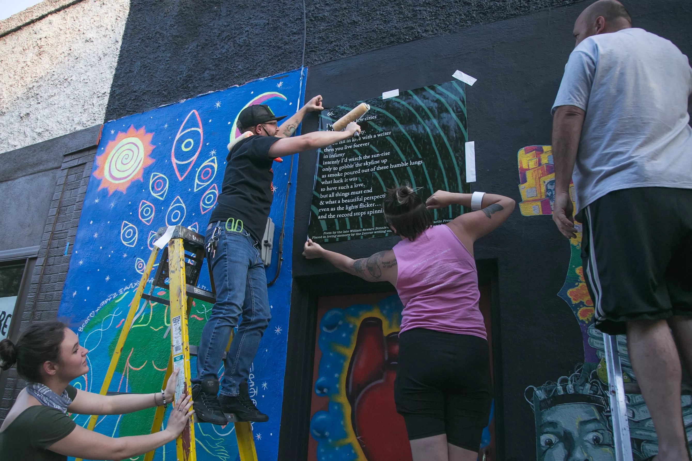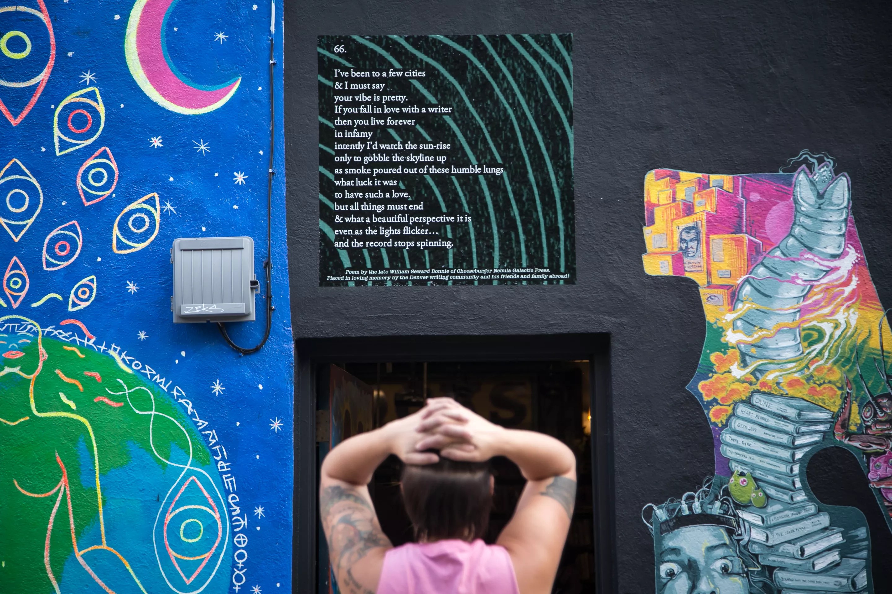 In the past two weeks, large stickers of poems written by Denver poet William Seward Bonnie, who died last November at age thirty, were put up at three Denver locations where he was known for hosting vibrant poetry readings and open-mic events.