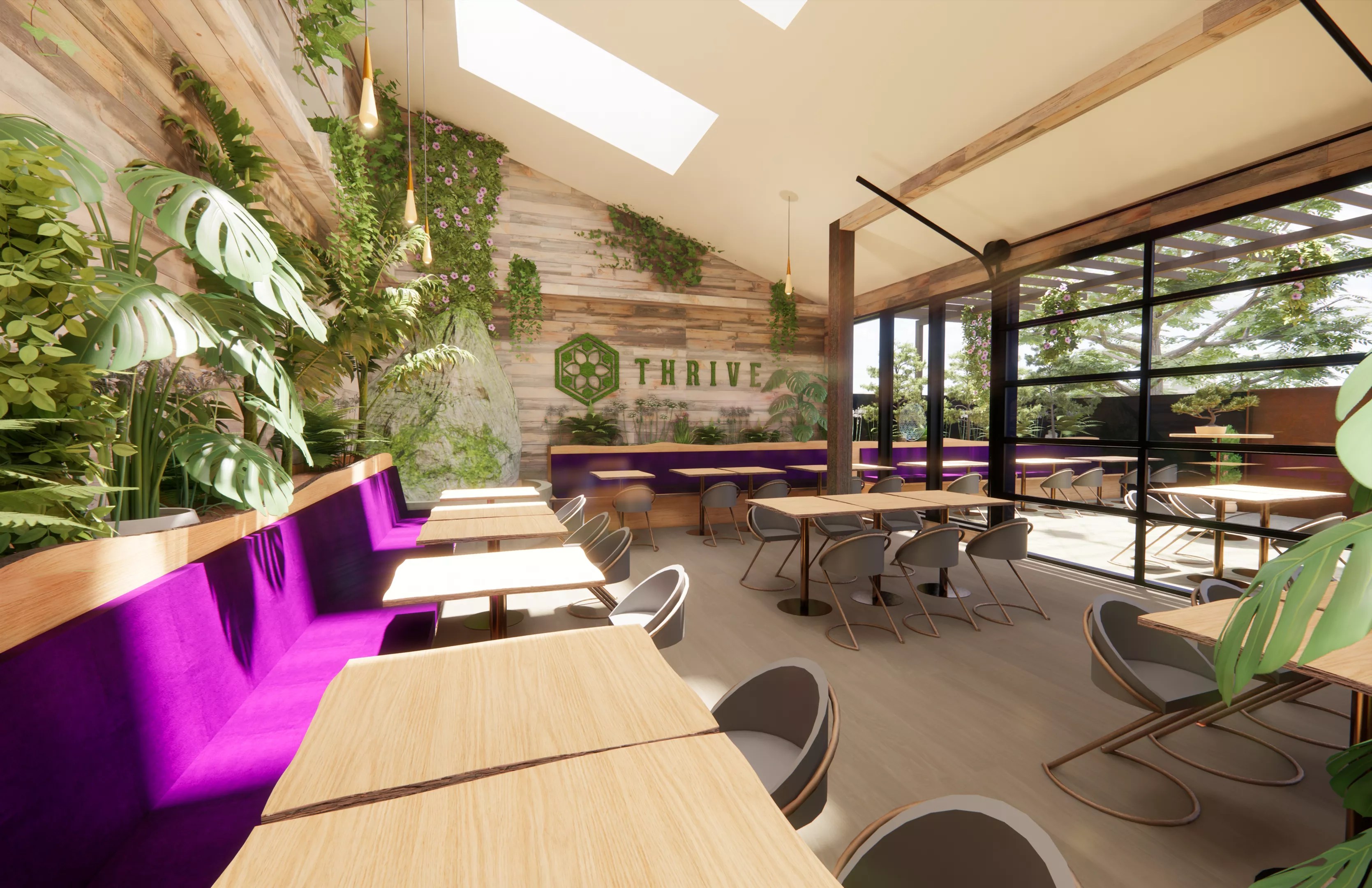Each floor will showcase a different aspect of the creative hub. Society Denver’s first floor will be a second location of Thrive; the space will be filled with greenery and have enough room to allow for performances at dinner. “We’ll have Iman coordinating aerials and different types of shows like belly dancing, and we’ll have music theater events and different dinner and theater experiences…for a full sensory experience,” Wiggins says.