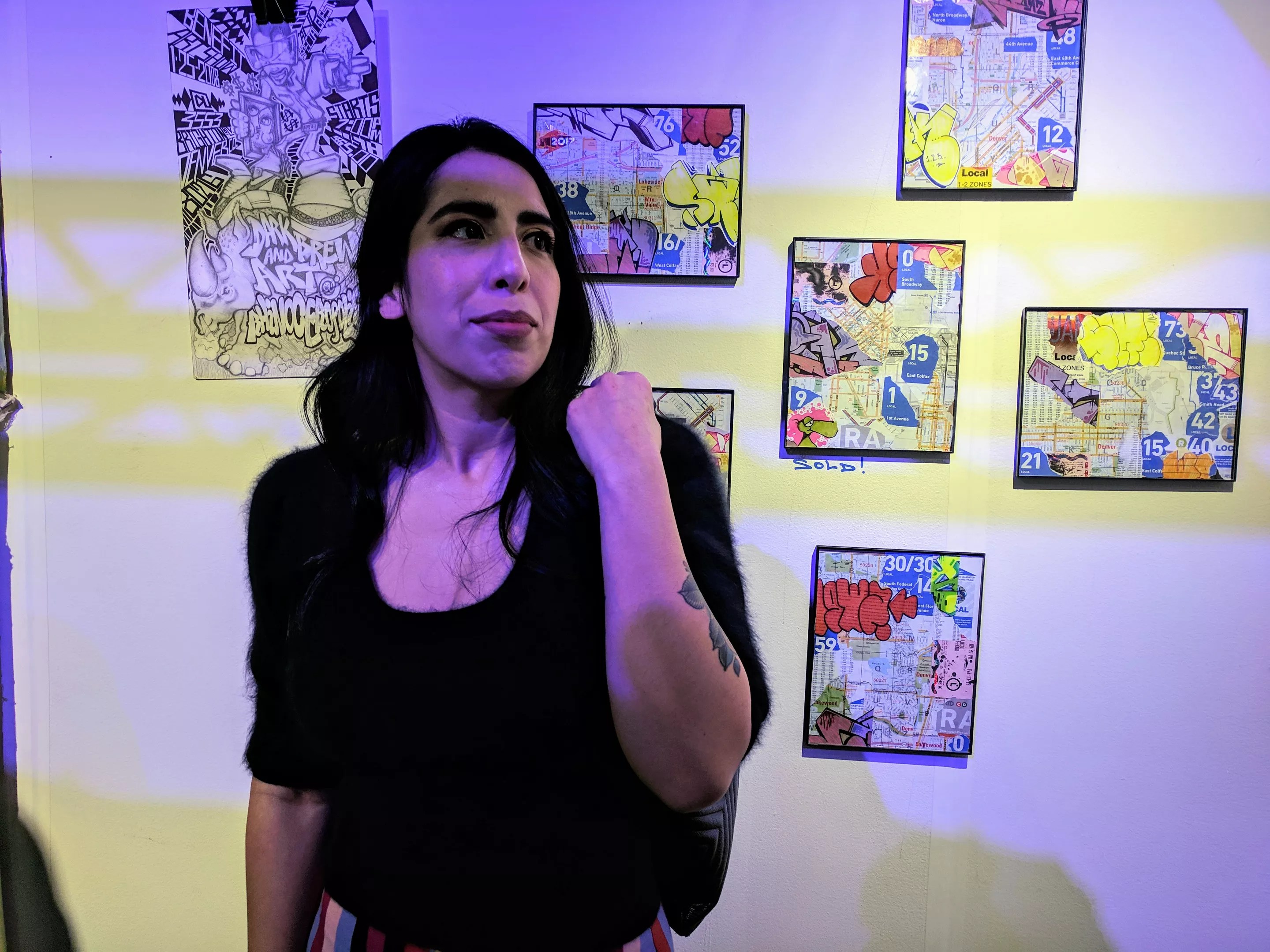 We spotted one-of-a-kind styles in the crowd, too, including the killer look of artist Nina Martinez, who grew up in Denver and Englewood. She does collage, drawing and assemblage; she’s also working on a business connecting art and wellness. Amid the spinning Bboys, we chatted with Martinez about what inspires her style and what she thought of Artopia.