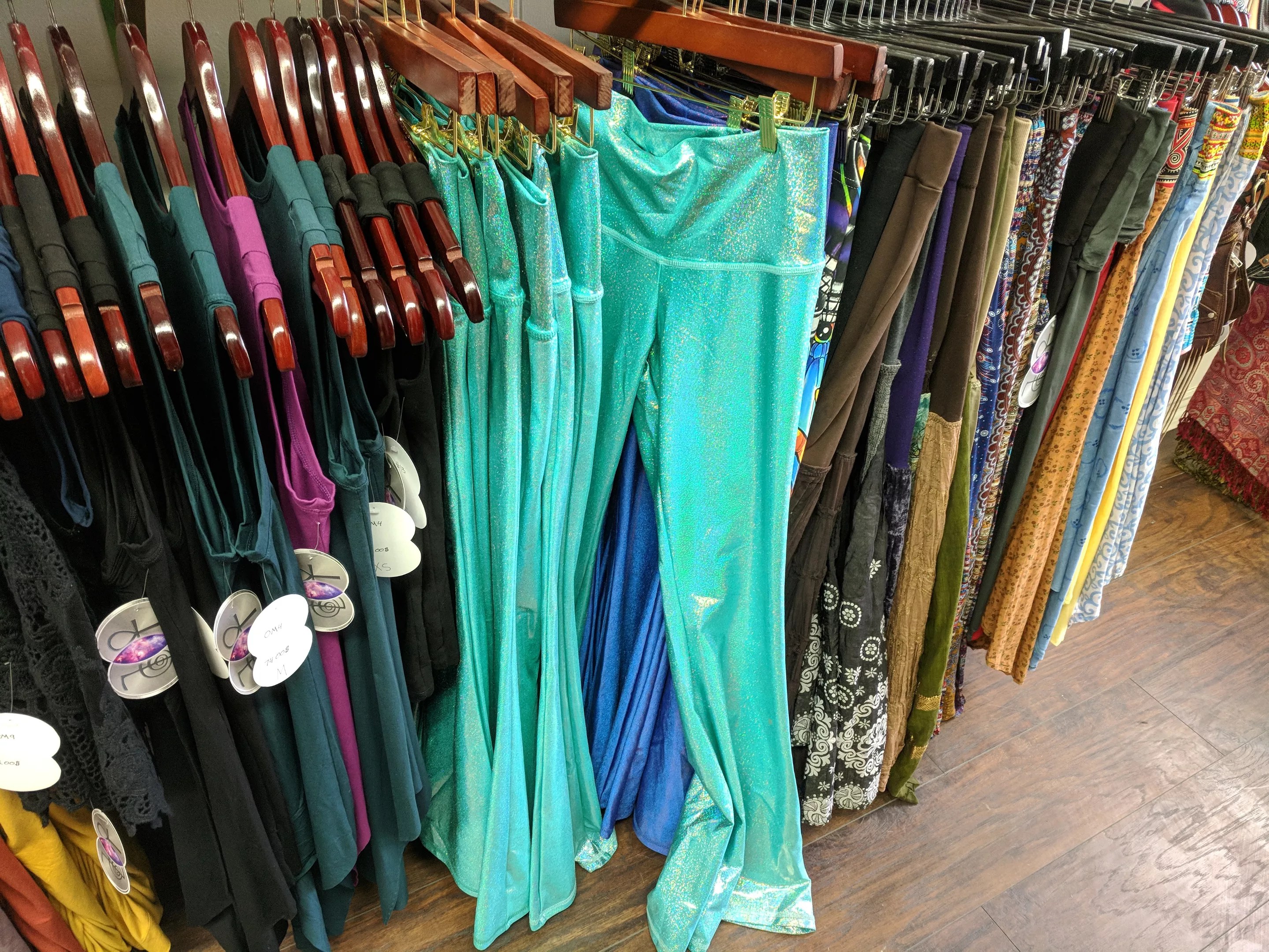 I love Umba in Boulder; they have similar styles and designs. I like to shop at music festivals all over and at shows at Cervantes’ when some of the artists bring their designs and couture. Outside of festivals and shows, it’s all online. There really aren’t that many stores in Denver proper that carry fisherman’s pants, different styles of leggings that are coming out even for men, hooded vests, even everyday wear. Everyone can feel a little fancier in their life, especially guys. I am trying to cater to that side of the demographic. Guys can have something new to wear to make them feel better in general.