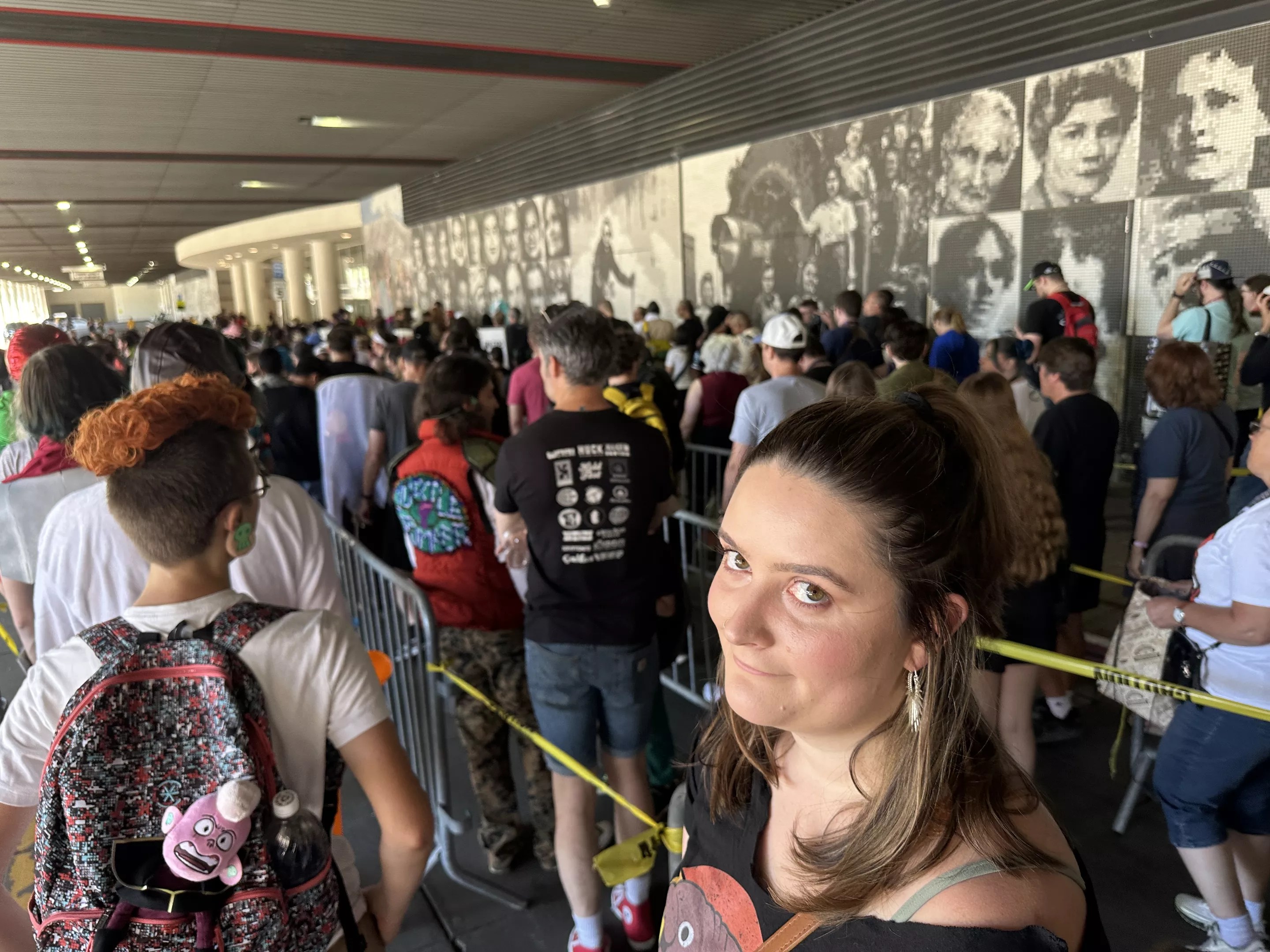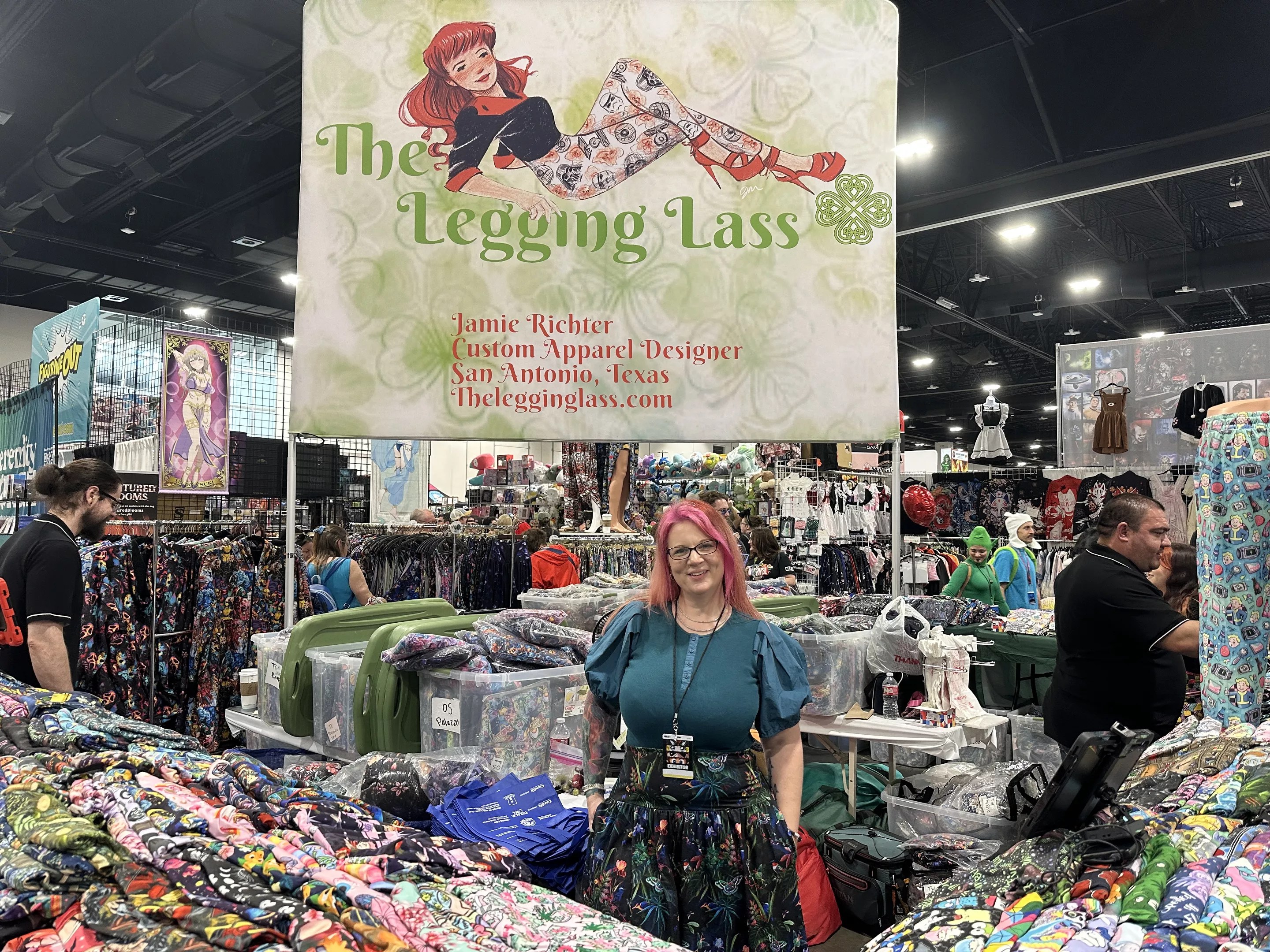 Jaime Richter here isn’t just the founder of The Legging Lass — she’s also a fierce protector of her own Intellectual Property Rights and those of fellow artists. This was the first year we asked if we could take a photo of a vendor’s wares; they politely declined, and offered other options — like this pic from a distance that focused more on her poster than her product. Richter explained that there’s just too much risk from unscrupulous people stealing images and the like, and she has to be careful — so careful, in fact, that her website is password protected, and interested customers have to email her to gain access to the site. It’s a new world for convention vendors. In terms of doing everything we can to support artists and their work, and keep it safe from A.I. theft? We’re here for it.