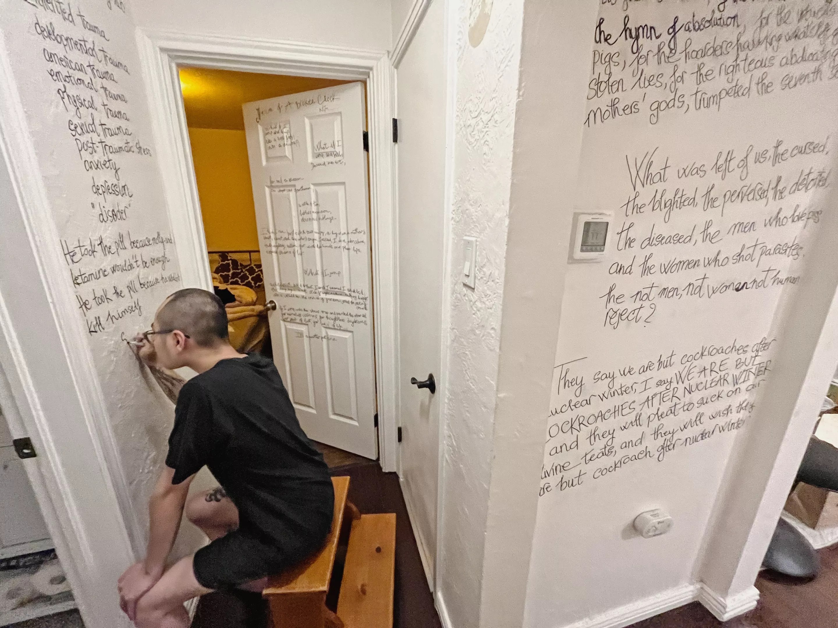 Viera Smith’s partner, Nïr, is scribbling poetry on the walls of Smith’s house near West Colfax Avenue and Xavier Street. Meanwhile, artist Pax Transwitch is covering the basement floor with sand. “There’s also going to be a tent and war sounds and blood on the ground,” Smith says.