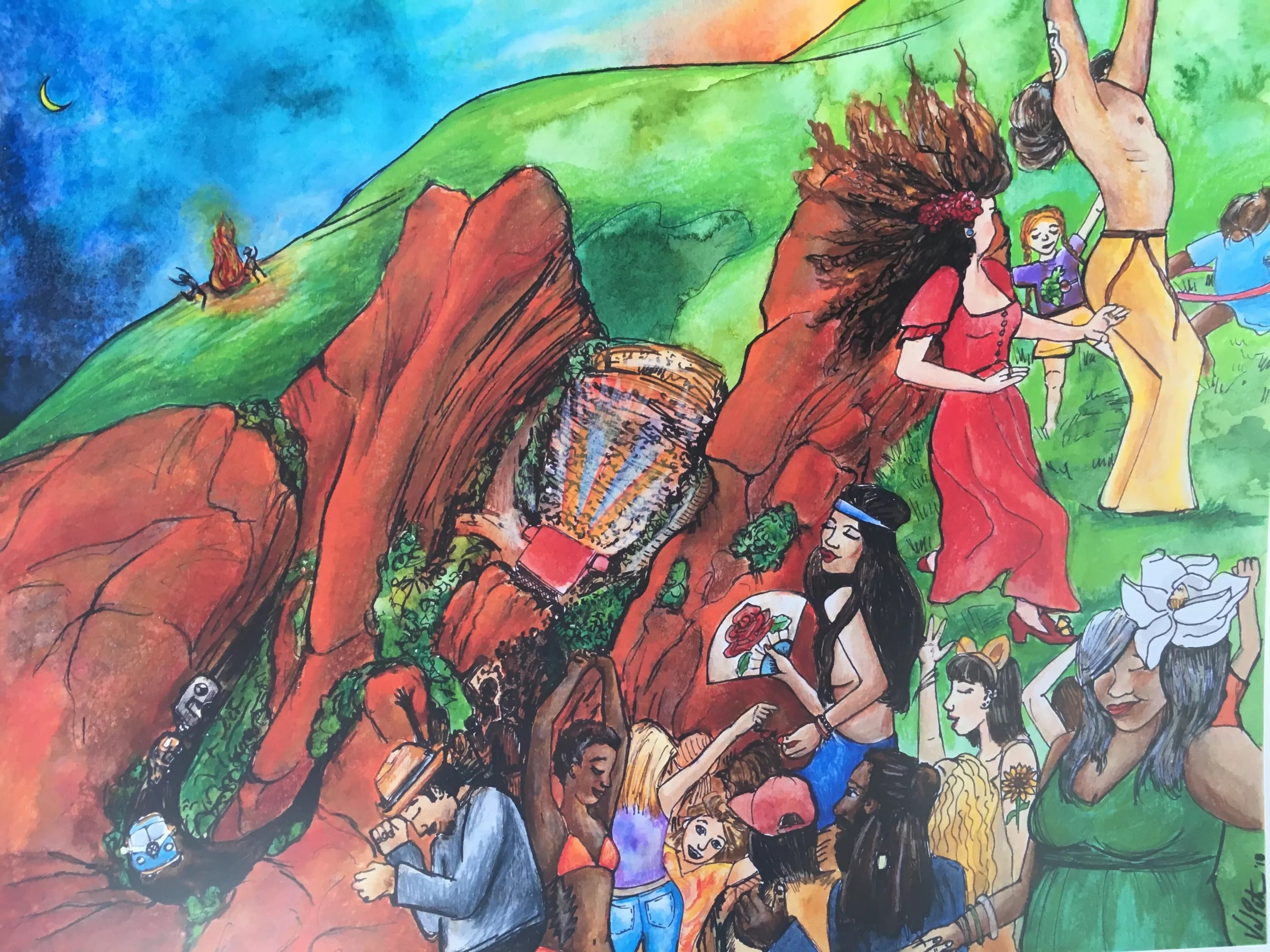 For that matter, Jamie has her own art for sale at the gallery. One of her paintings is a textured, colorful depiction of a concert. “That’s how I feel at Red Rocks,” she says.