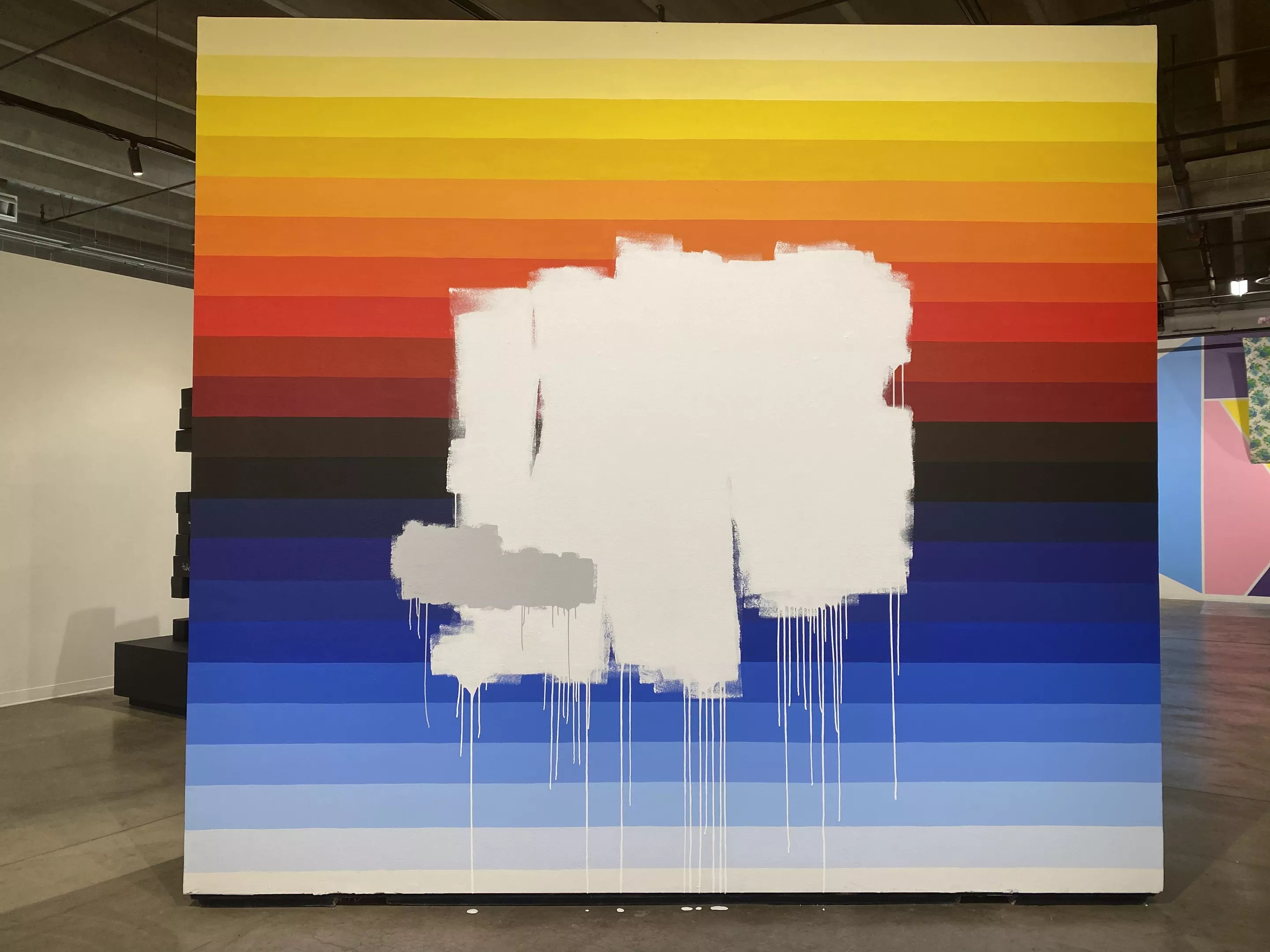 Artist and community activist Anthony Garcia Sr. has also taken over both sides of a freestanding wall for his two-sided mural, “White Wash.” On the prominent side is a set of horizontal stripes evocative of Latino weaving, marred by a swath of whitewash and on the other side broader stripes in a dirty white all but completely cover the marks and images that lie beneath. As Garcia explains in his artist’s statement, the goal is a society that values its communities and their histories. Gentrification and the erasure of existing cultures is clearly on the mind of the artist, one of the city’s premier muralists.