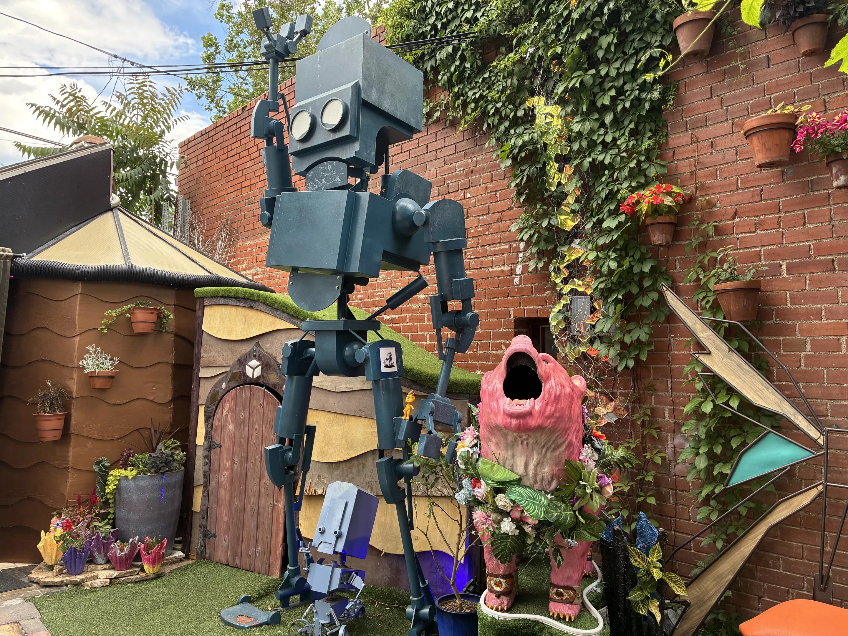 While the indoor rooms are short on spectacle, the outdoor section quickly makes up for it. What begins as a quiet art garden reveals itself to be a lively patchwork of handcrafted structures, colorful flora, hidden details and interactive installations crafted by over 40 local artists.