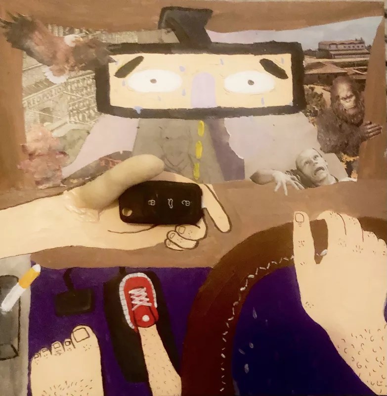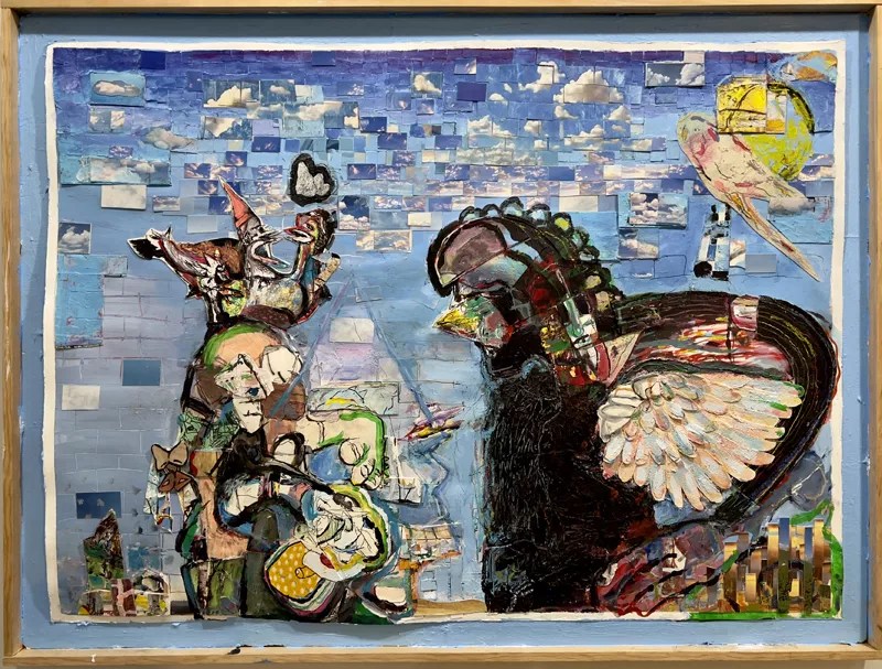 Drossman’s own pieces explore memory and identity through collage, incorporating fragments of past works into new compositions. “Each piece I make includes a part of the previous one,” he says. “It’s like a visual timeline, a way of connecting who I was with who I am now.”