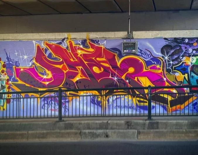 That struck a chord with Alexandrea Pangburn, an artist working with Crush at the time who is now the RiNo Art District‘s director of curation. When she was charged with coming up with alternative ways to celebrate murals — which have become a major draw for businesses and tourists alike in the area — she decided to transform the 38th Street underpass between Brighton Boulevard and Walnut Street into a rotating showcase for work by established graffiti crews and artists.
