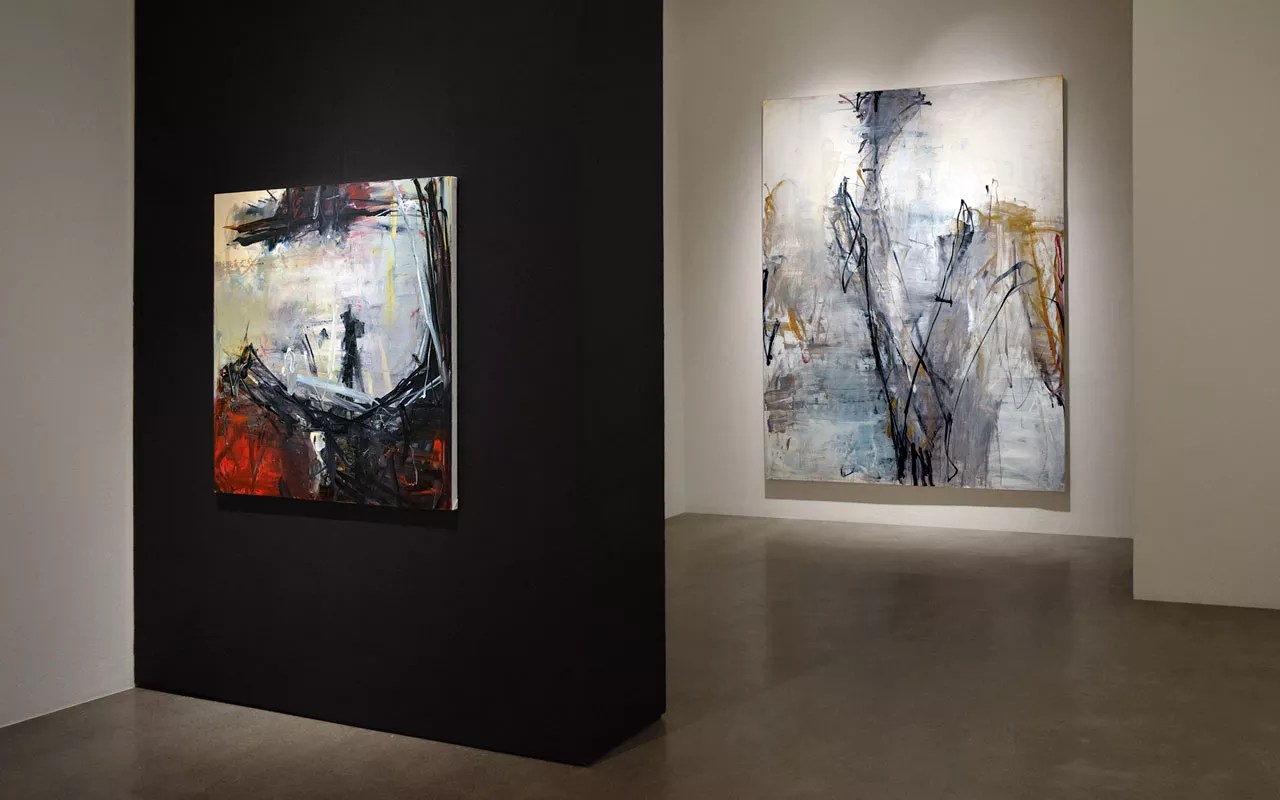 Abstract expressionism, the mid-twentieth-century movement that rewrote art history, is still pointing the way for many contemporary painters. The defining characteristics of abstract expressionism (a sensibility rather than a single style) are non-objectivity and exploration of the physical characteristics of the pigments themselves. How the paints flow, how they drip, how they smear, how they can be tissue-thin or as thick as putty, are all urgent concerns. Abstract-expressionist paintings put equal importance on the entire surface of the canvas or panel, in contrast to a traditional portrait, in which the center is the most critical, or a traditional landscape, in which the foreground is key. Robischon Gallery is currently hosting three solos with paintings that somehow refer to, or are tied to, the epoch-making approach of abstraction, while a fourth includes abstractions based on natural shapes. This last solo may be unrelated to the others, but it looks great with them anyway.