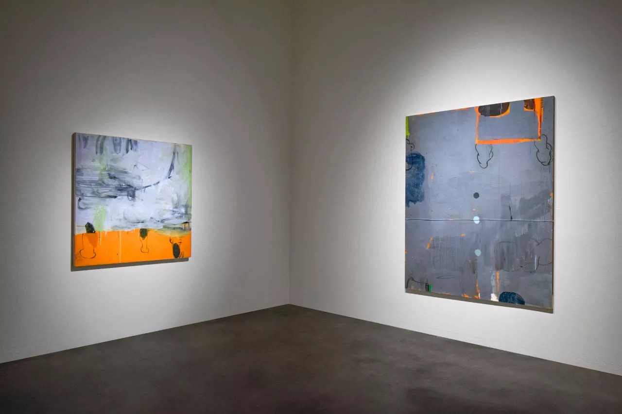 In the large back gallery, Tom Lieber: Mulas (Nakshatra) includes paintings that are much more a continuation of abstract expressionism, essentially neo-abstract expressionism, than a commentary about it. The pieces are invariably large, because otherwise they couldn’t capture the painterly gestures Tom Lieber trades in. The paintings typically have atmospheric fields on which Lieber has added long arm’s-length strokes on top of abundant runs and drips, paint-outs and paint-overs, all of them seemingly done rapidly. The physicality of the artist is translated directly through the slashes of paint. Tom Lieber’s “Midnight Drop” (left) and “New Sprout” at Robischon Gallery. Courtesy of Robischon Gallery