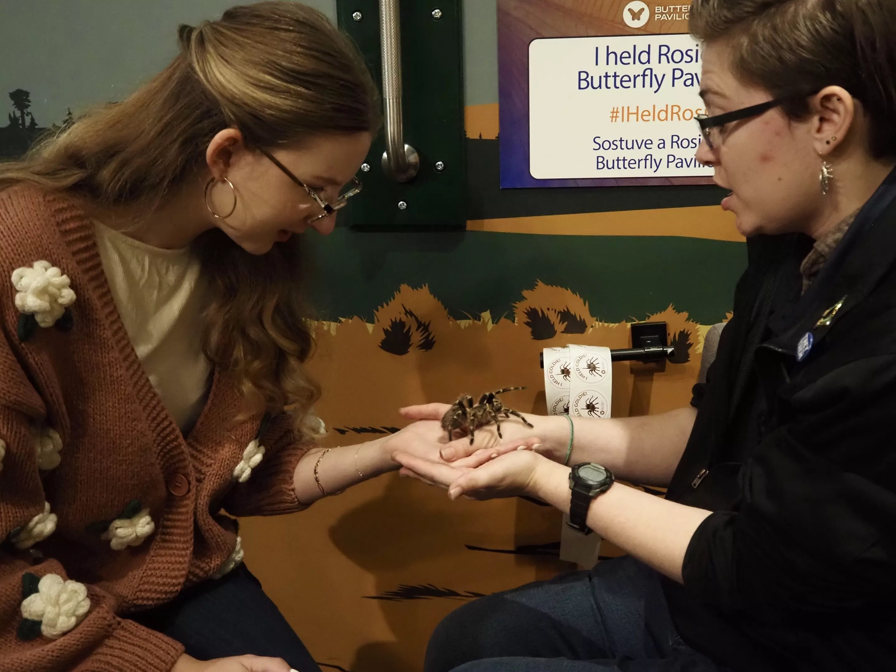 As with any proper mascot, there’s not just one Rosie. The Butterfly Pavilion kept eight to ten Rosies in rotation so that the spiders would only work two hours each week and have long rest periods, as walking from palm to palm can be strenuous for the spiders, which don’t usually walk a lot in the wild unless they have to.
