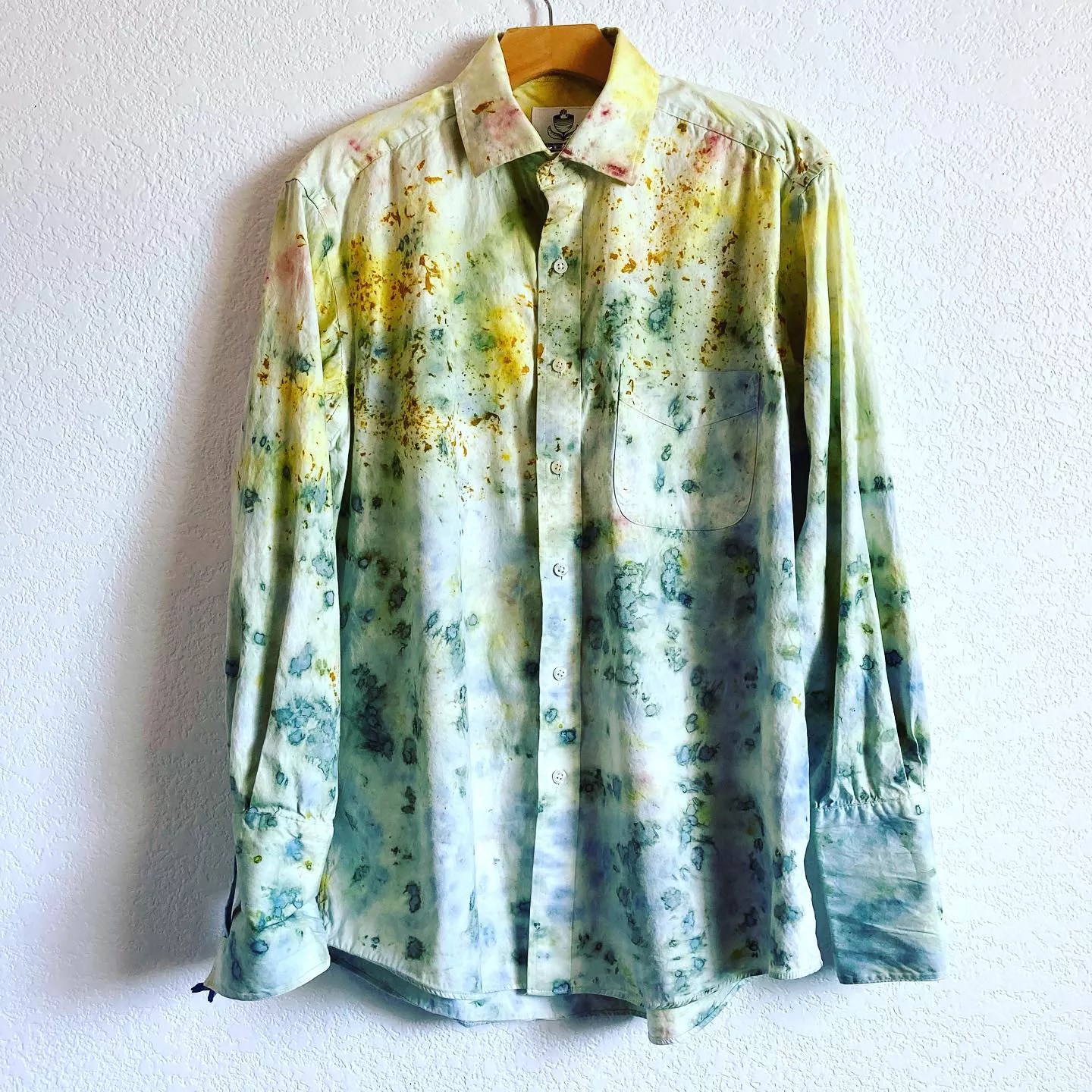 The clothes go through what she calls a “scouring process” before they are dyed. “Most of our clothes have been treated with a petroleum softener — almost like a coating on the fabric — so they feel soft when we buy them,” she says. “I strip that out so the dye takes better, then I soften them again with natural softeners. If it stills feels too rough, I’ll use the material for something else, such as a textile wall hanging.”