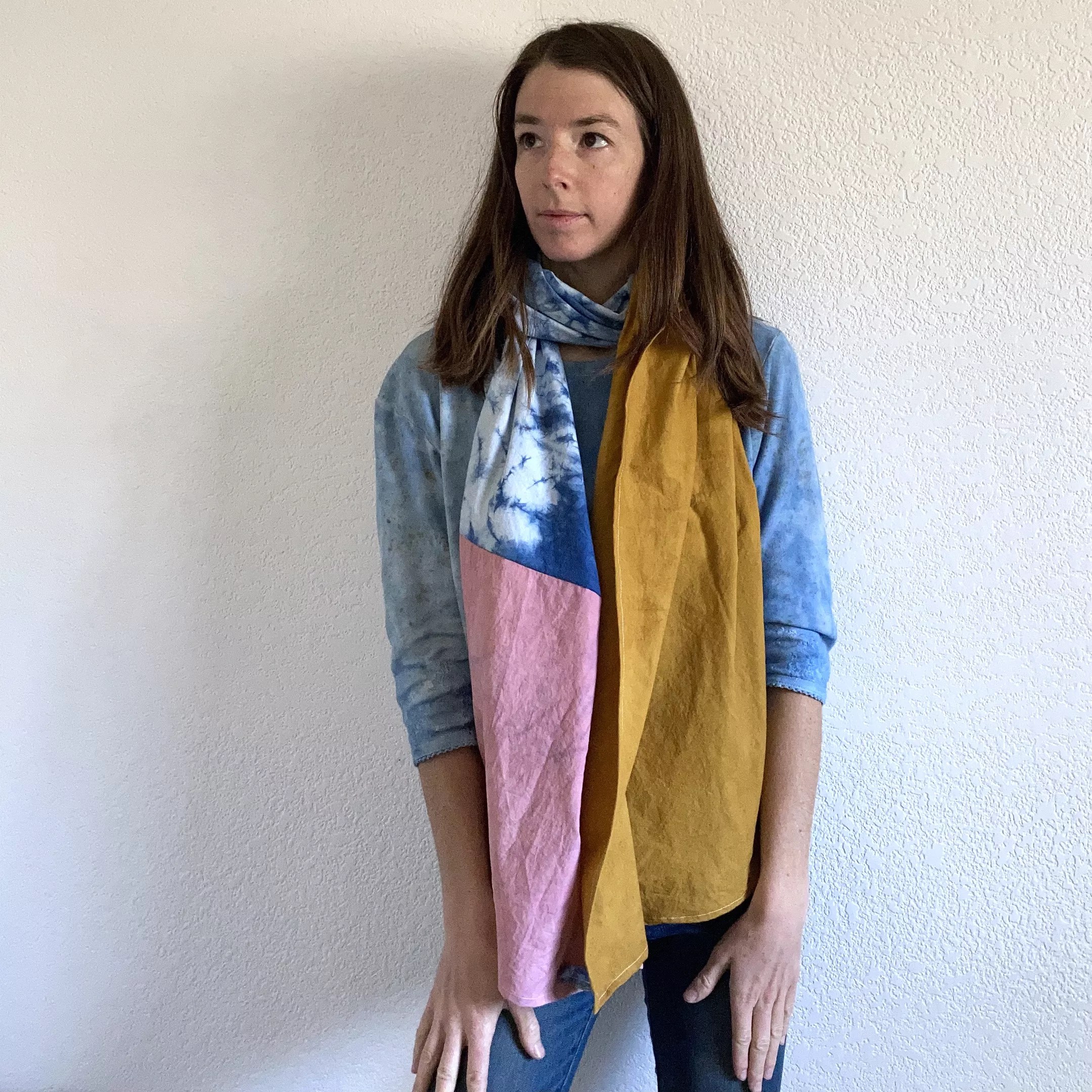 Rich has also created DIY kits for those who want to try their hand at plant dyes. “I want to encourage people to make their own clothes,” she says. “So I put together these kits with a scoured bandanna, a test piece of fabric and instructions. I list some common items you can use for dye, such as onion skins, avocado pits, turmeric or paprika.”