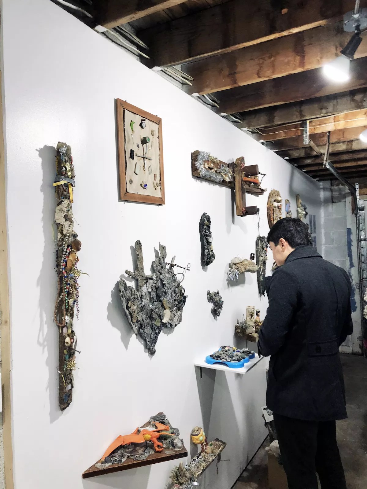 Art found me because some of the hobos started me in making it. They’d take rocks and things they found along the railroad and make art out of it. I grew up with it hangin’ always over my shoulder. I got serious about it here recently, with help from Adrienne [Garbini] and Alex [DeCarli].