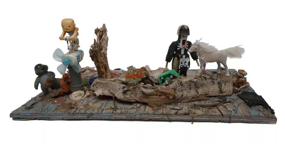 Every bit of the way, he’s suffered bigotry and violence, but now settled in the valley with friends in town who look out for him, he collects things and turns them into folk-art assemblages. With help from artists Alex DeCarli and Adrienne Garbini of the Range in Saguache, Smith has found some recognition for his artwork, currently on view in Denver through the end of December at Peralta Projects (details below), in collaboration with the Range. Many thanks to Esteban Peralta, who took the time to conduct the Colorado Creatives interview verbally with Smith. Read on to learn more about Smith’s outlook and life story.