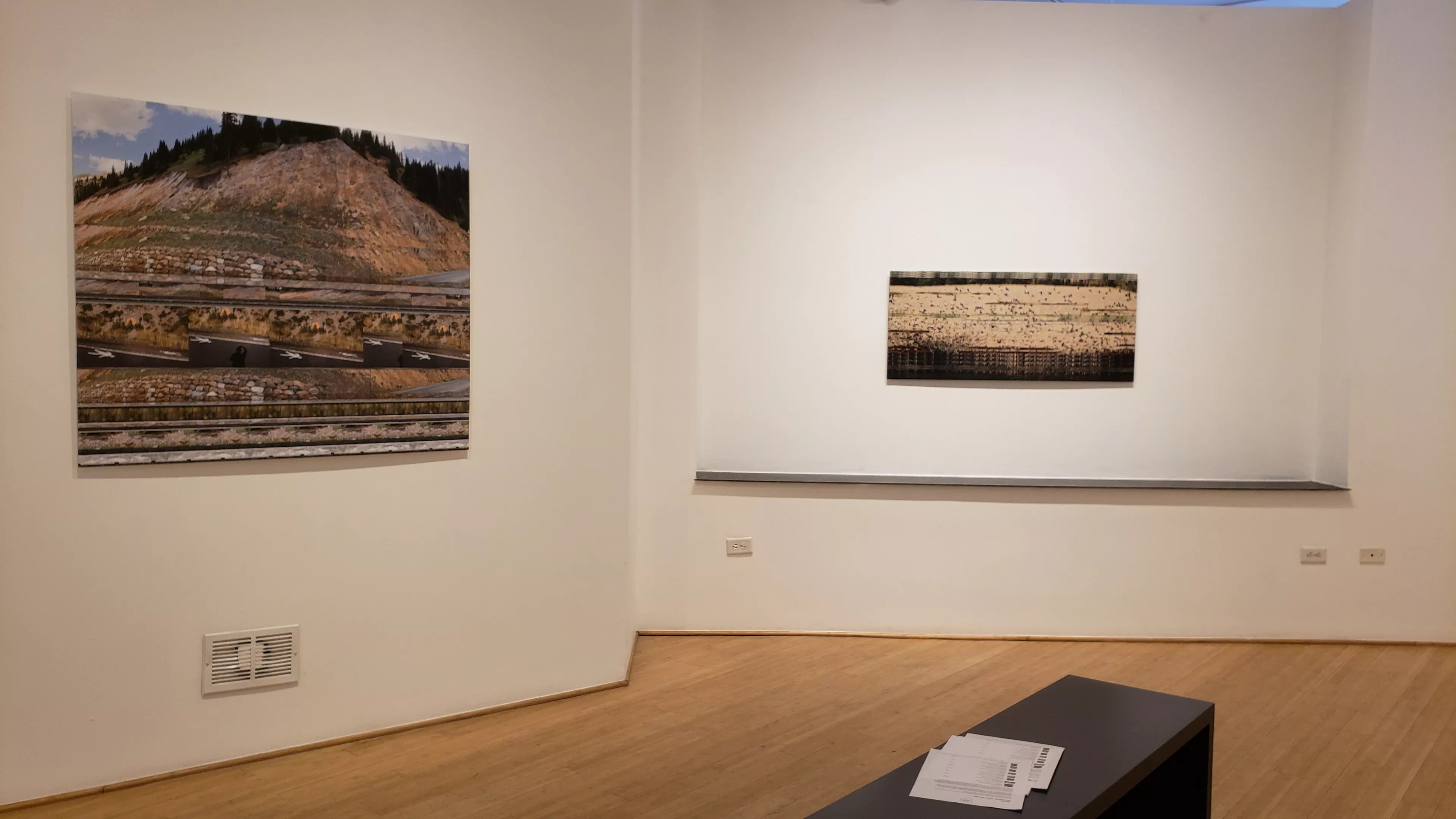 Interference opened less than two weeks later, with more than enough recent work to take over the entire front set of spaces. Most of the pieces are variations on a two-level op-art bas-relief that looks like a light box, a frequent form for Parson, but isn’t, since the only illumination is the ambient light of the room. For these, Parson has pierced a black screen with a linear composition and then mounted it out from a white field adorned with a composition that’s also black, like the screen. The wide space between the two components, along with the brightness of the white, provides just the right amount of light to reveal the moiré effect he wants, where the overlaid patterns seem to shift as the viewer walks by. Angela Faris Belt’s digitally altered landscape photos. courtesy Michael Warren Contemporary