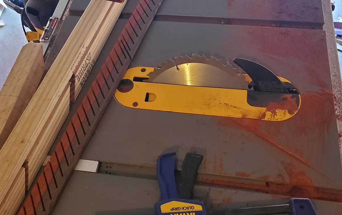 Autumn T. Thomas uses a table saw and other woodworking tools to create her sculptures.