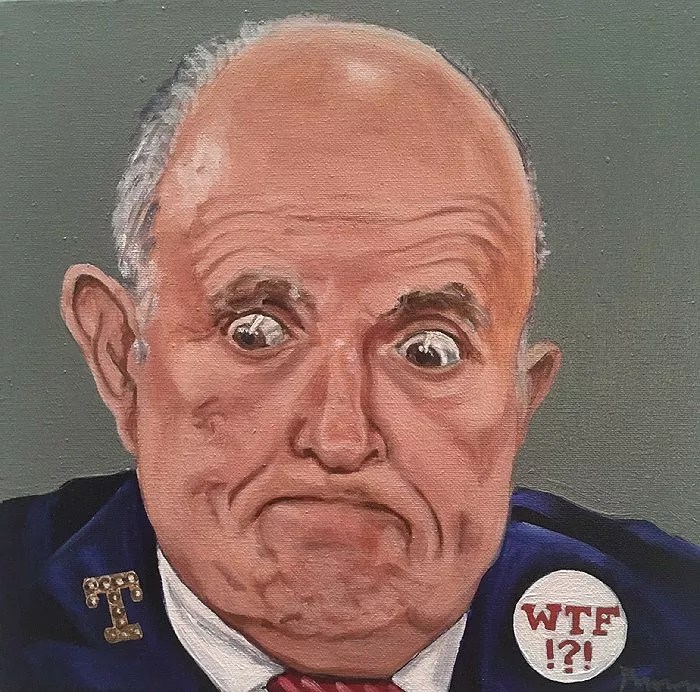 “Ultimately I love to paint, so I’m doing something I love even though I hate the person,” Brown says. She became absorbed in the process and did not overthink the men under her brush. Upon staring into the Trump void, the void did not stare back.