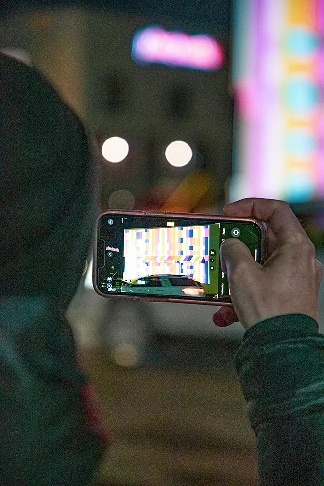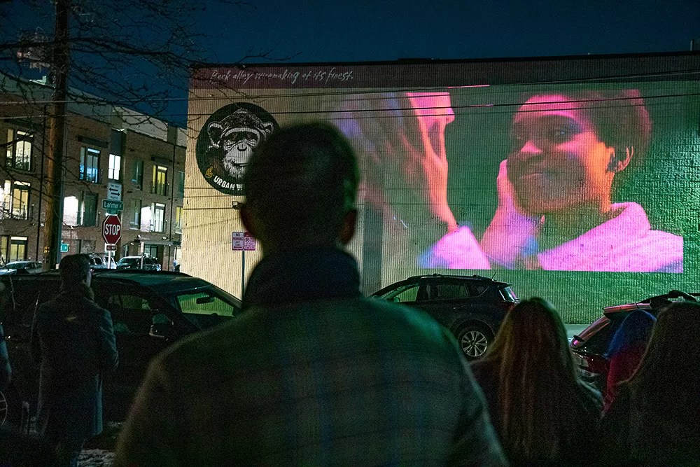 On Walnut Street’s 2600 block, Waveform Experiential’s installation showcases how movement can stimulate the imagination. And at 25th and Larimer streets, Todaro’s film looks at the way AI-generated faces can mimic human movement and emotions. The idea for Todaro’s piece came from the feeling Todara experienced while scrolling through social media and noticed that the content could shift dramatically in tone from post to post.