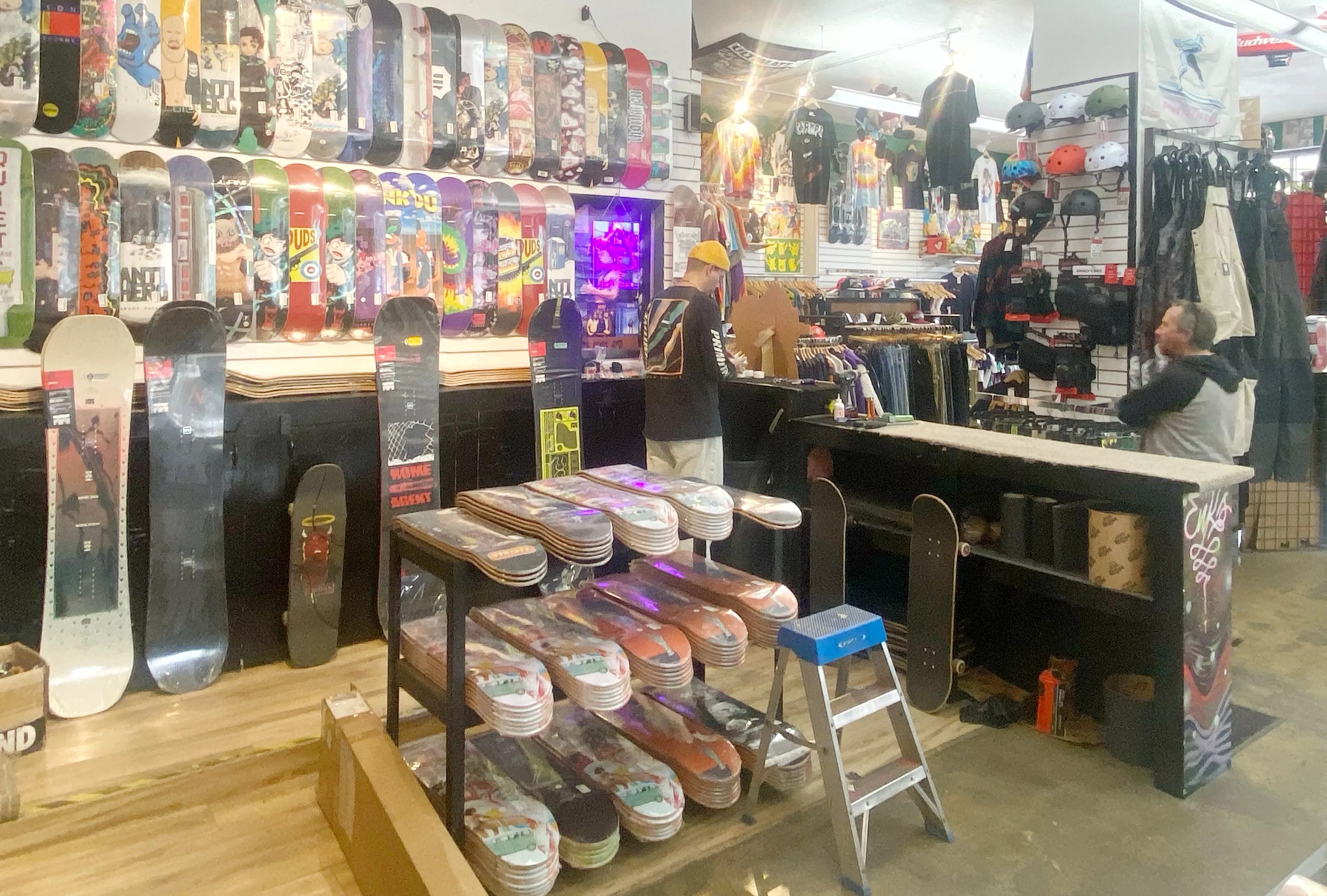 Melissa Salsbury: I opened a shop because of the passion side of it. Both skateboarding and snowboarding are sports where the person who is participating in it achieves a flow state, where the whole world disappears. Your body is absorbed in the motion, and it is a place of healing and growth. I lost the ability to skate in 2016 due to pretty severe injuries, and it was important to me to maintain that connection with that community, which had provided me such a safe space. I needed to be involved in some level. The shop was for sale, and I really liked the location and the staff; much of the original staff is still with us. I have been a small-business owner since 2003, working in advertising, legal cannabis owner and operator, and I decided I was tired of the intensity…only in time for COVID to do it’s thing. I became the owner in 2018.