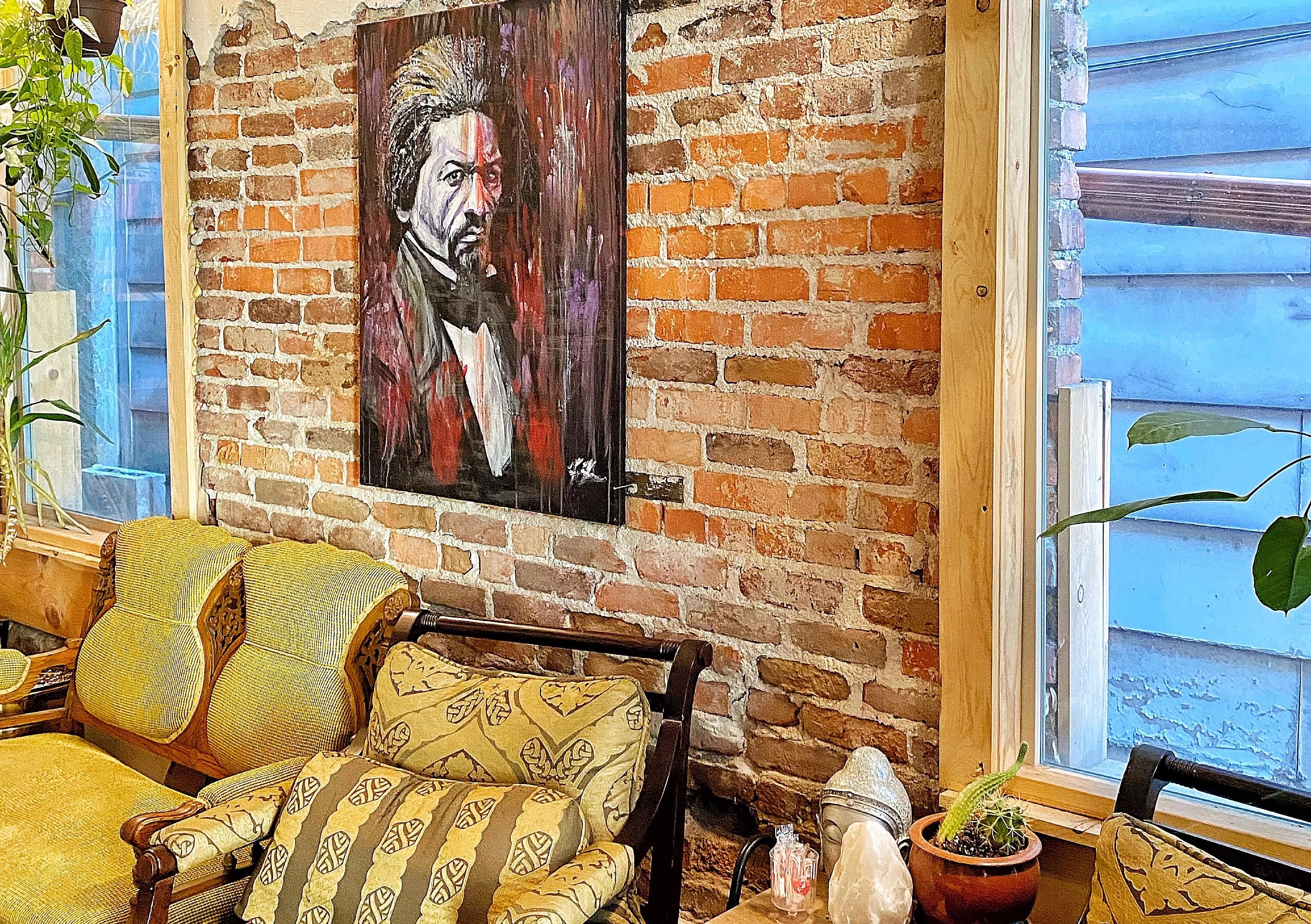 This building picked me. I saw it on craigslist and I got goosebumps. It was an abandoned speakeasy, and I fell in love with the building. I knew it was where I was supposed to be. There is a plaque outside that talks about how Frederick Douglass’s sons had a mortuary here in the 1800s. You can feel the good energy in here, and you know it was a respectful place back then, too.