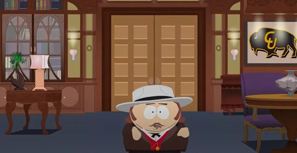 Parker and Stone’s alma mater makes a bumpersticker when hippies take over South Park before Cartman drives them out in season nine favorite “Die Hippie, Die.” But it gets a starring role in season fifteen, when Cartman creates a nonprofit called the Crack Baby Athletic Association after he sees a commercial styled in the form of the emotionally manipulative Sarah McLachlan ASPCA commercials, but with crack babies instead of puppies. He makes a business out of it by recruiting unwanted babies to play “crack baby basketball,” in which they fight over a ball of crack cocaine, and Kyle joins the operation, saying they’re not exploiting the crack babies, but giving them opportunities to be famous. (The episode aired in 2011, when there was an uproar over college athletes not getting paid while their images were sold.) Cartman ends up proposing a trade deal to the dean at CU — a scene that takes place in the dean’s office — but is swiftly castigated and told to leave after he keeps referring to student athletes as “slaves.”