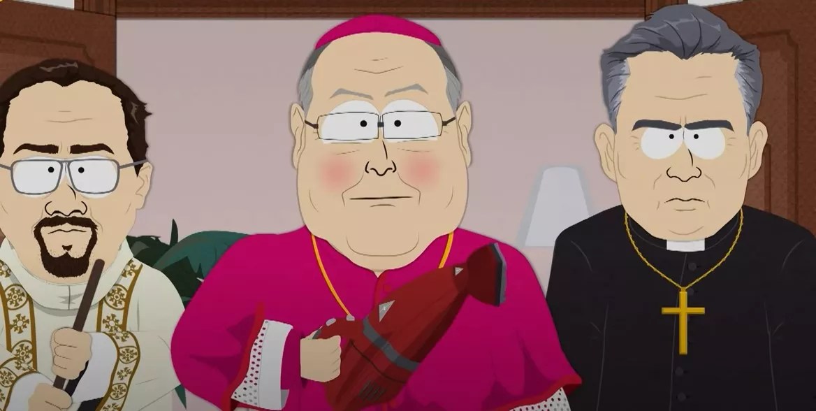 This episode aired in 2018, when the Catholic Church was facing yet another round of scandals regarding inappropriate sexual behavior by its priests. Stan finds out that his parents and other adults in town only go to church so they can mock Father Maxi with Catholic priest jokes. Father Maxi locks the church on subsequent Sundays, and when Butters takes pity on the priest and begins hanging out with him, the townspeople are confused. School counselor Mr. Mackey calls the archbishop, who is seen at the Archdiocese of Denver, and tells him that Father Maxi has gone missing. The archbishop assures Mr. Mackey that there’s nothing “suspicious” going on and requests he not call the authorities. After hanging up, the archbishop calls the “Catholic Cleanup Crew,” which is responsible for clearing up priests’ semen. (No, nothing happens between Father Maxi and Butters.)