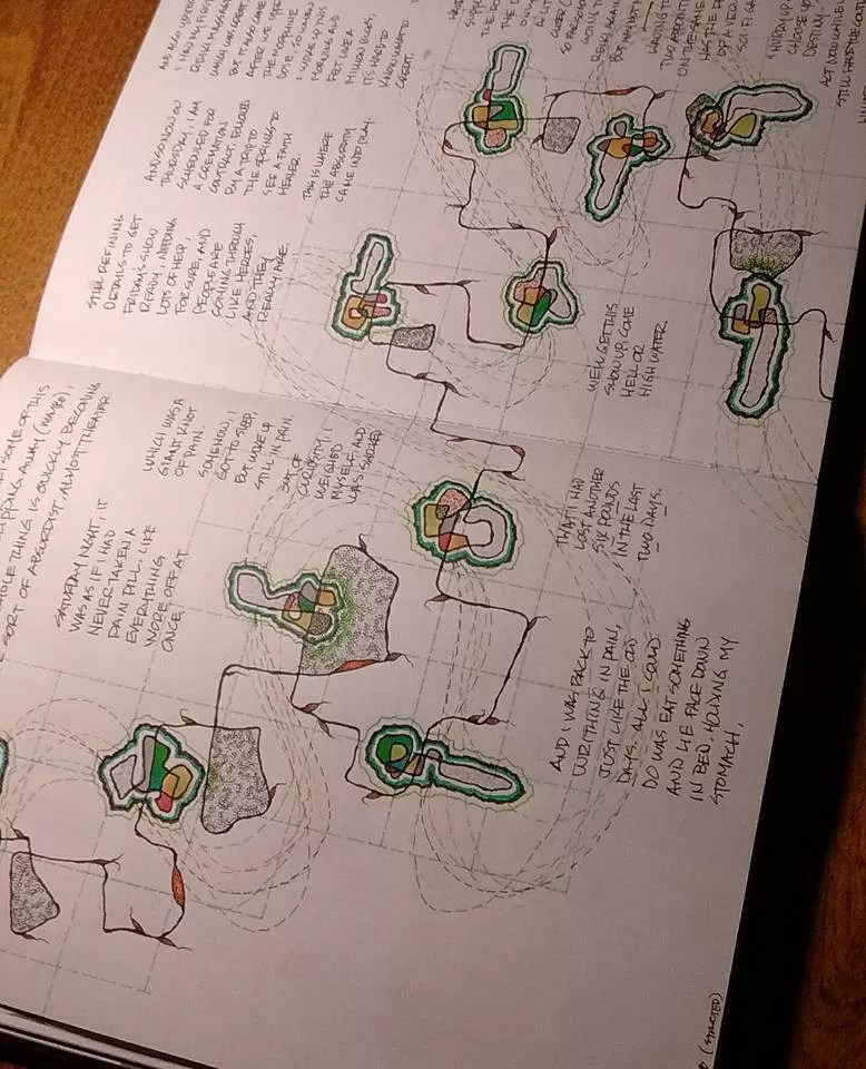 “He went home, but he was always working,” Taft continues. “He created an amazing journal of this time, writing about what he was thinking and feeling. Drawing. He and Conrad have plans on making them into visual scores. … It is honest and raw and really, really brave.”