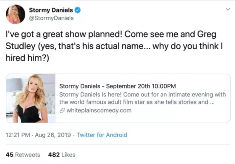 Okay, Stormy Daniels. Now there’s a brush with greatness that would have made for a good story on Letterman. Can you tell us how in the world that came about? What Stormy was like? Good kisser?