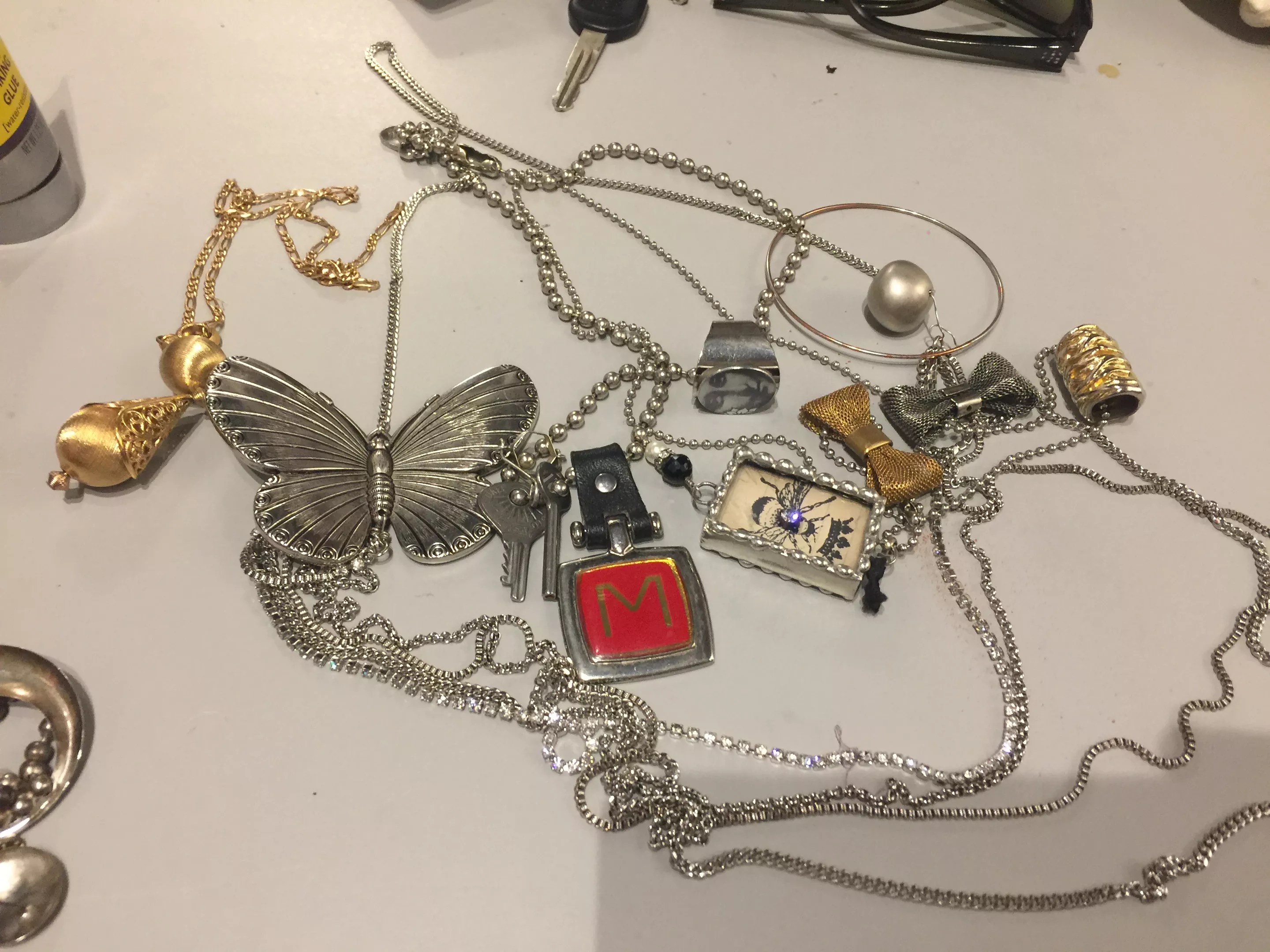Probably necklaces, all kinds of necklaces…. I love necklaces because you can express so much by layering them or by adding something to it. I have chains where I just throw a bunch of beads on or weird little trinkets, and before you know it, the necklace becomes something that has a personal meaning to me specifically. You can say so much with a necklace.