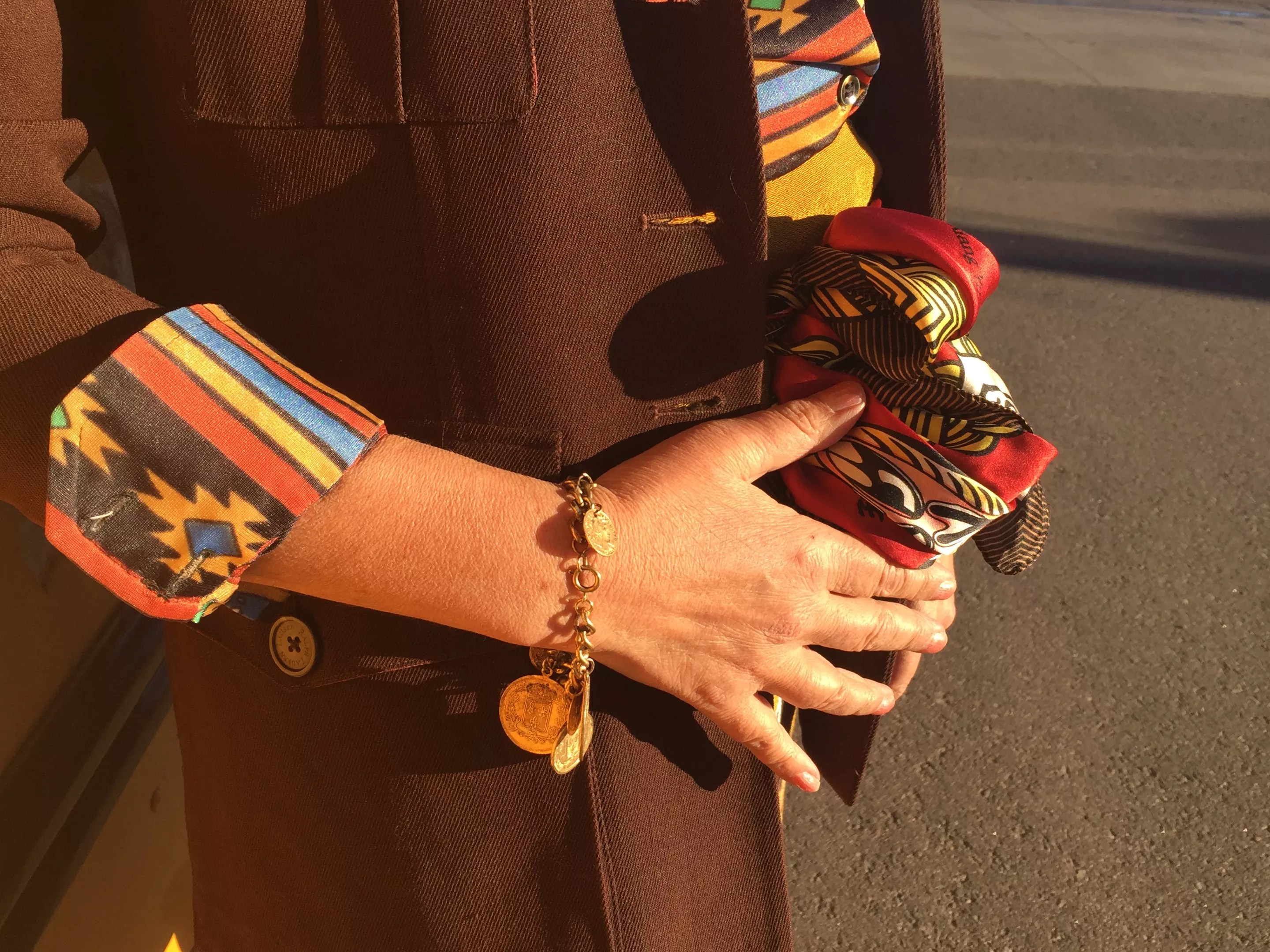 Designer Mona Lucero spotted near her studio on 30th and Blake streets in Denver.