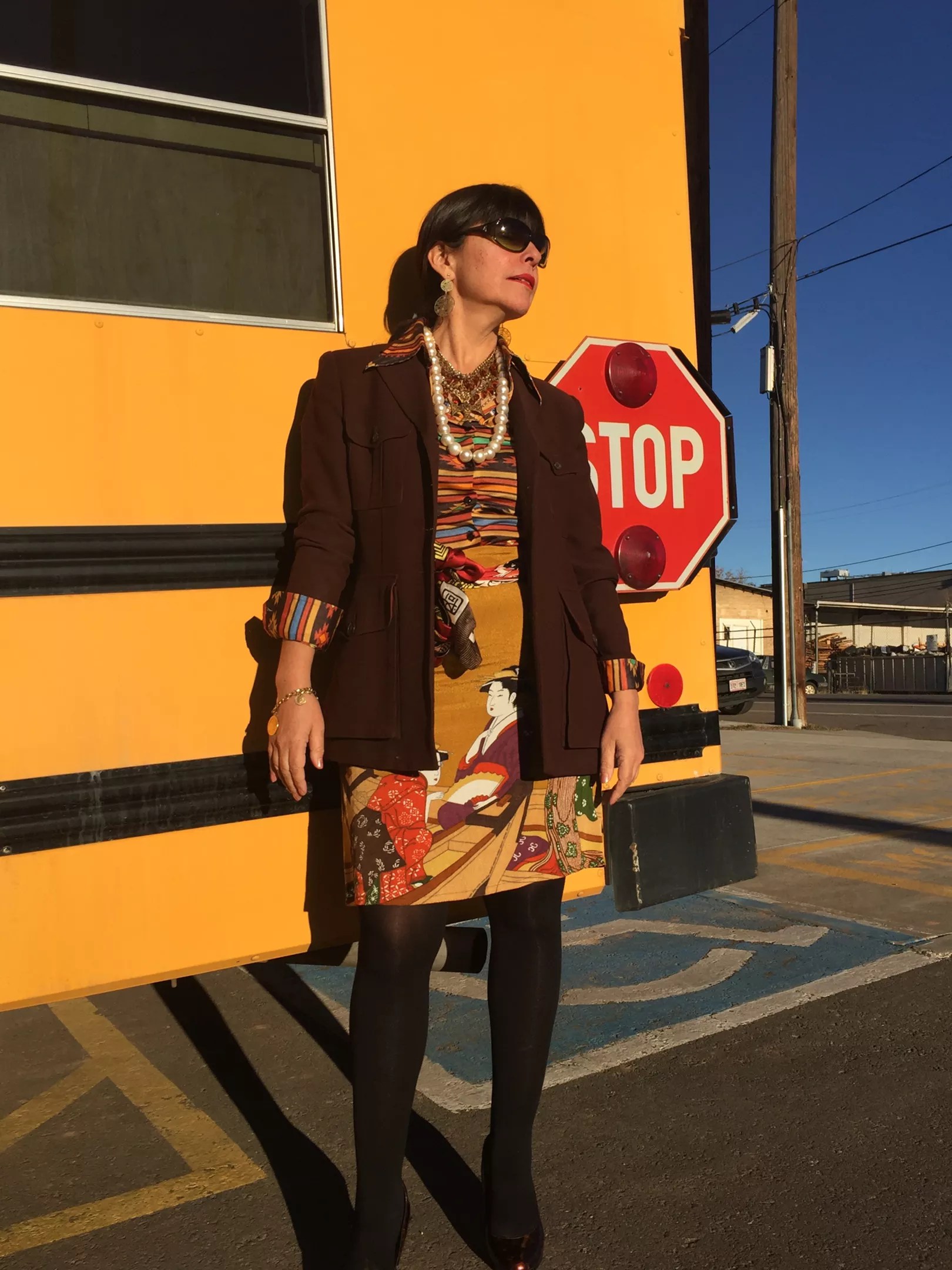 I make most of my own clothes and shop in my studio sometimes. I try not to as much, though, because I say, “What are the customers gonna buy?” I love vintage shopping, and do still shop at vintage stores. When I travel, I try to buy at least one piece of clothing that I love from the place that I visited, as a souvenir.