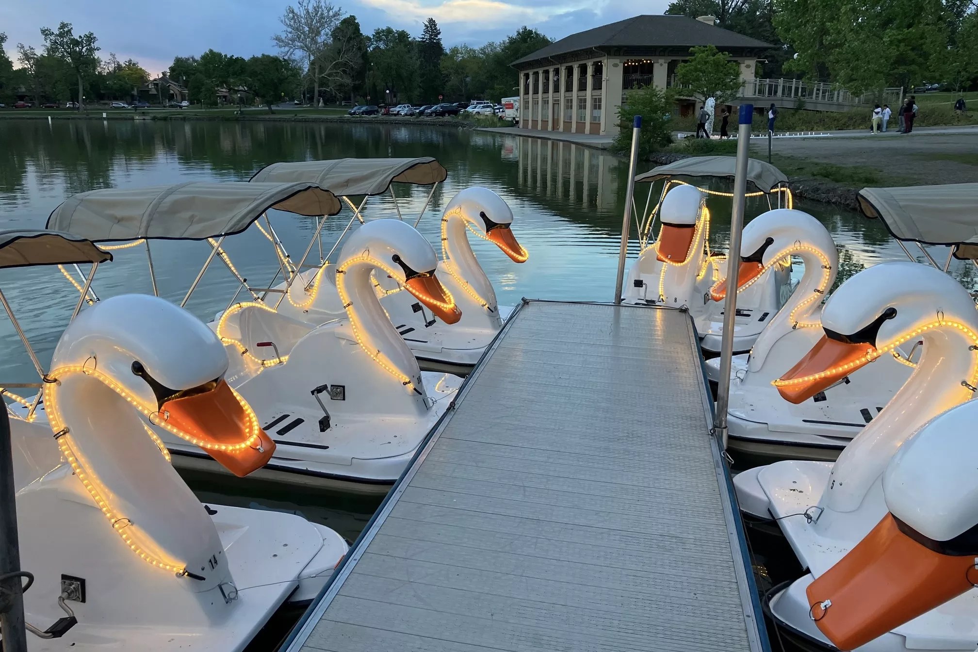 Wheel Fun Rentals has operated along Ferril Lake in City Park and Smith Lake in Wash Park for years, but not until last summer did the latter receive its most popular offering: swan boats. Though the boats are available during daylight hours through October 26, many pedalers opt for evening rides, when the floating fowl glow with LED string lights. Priced hourly at $12 per adult and $7 per child under thirteen, this leisurely experience is perfect for a date night or entertaining the entire family. When booking, consider the company’s other rental options, including bikes and four-wheeled Surrey cycles that allow visitors to explore either park’s extensive paved trails with ease.