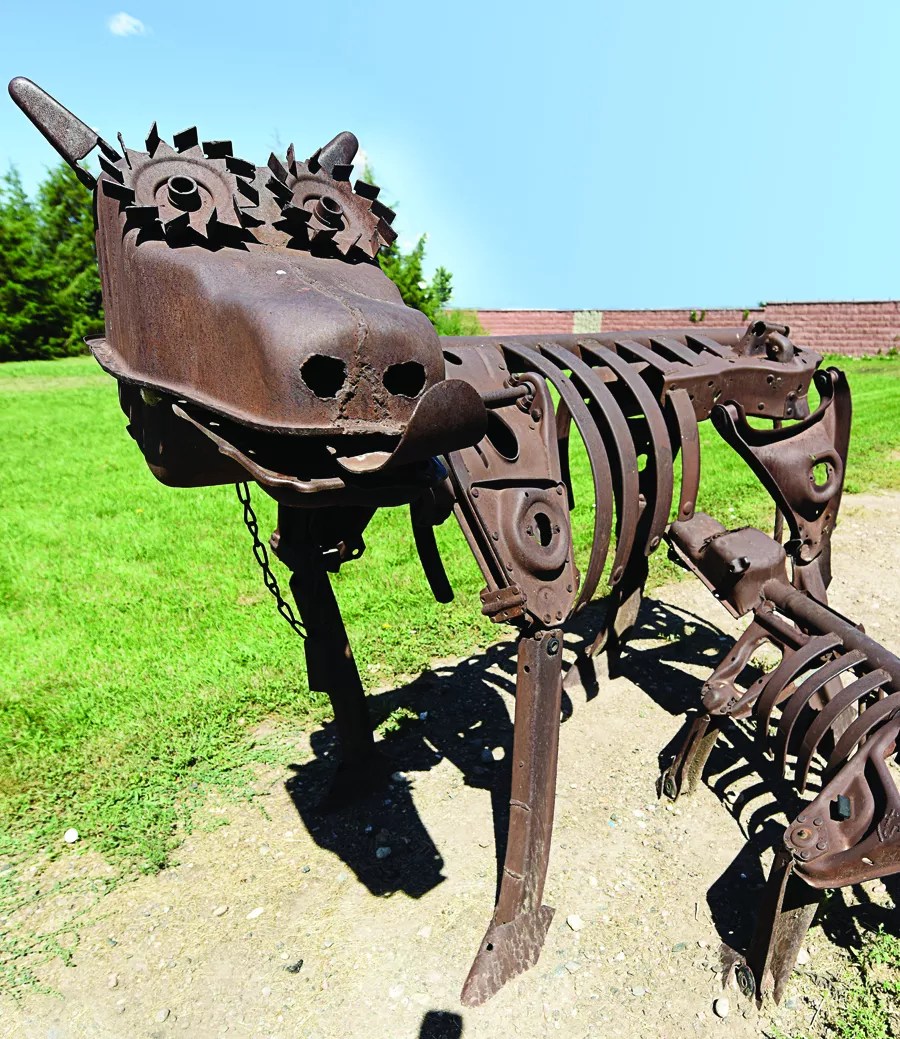 Swets has been slowing down lately. He made his last sculpture a year ago, a little Minion that stands near two twenty-foot-high dinosaurs. “I just don’t have the strength to bend metal into ribs,” he says, gesturing at the behemoths. He’s had some health issues and he’s hard of hearing; Diane often has to repeat questions. But he still has the energy to come out and talk to the people who visit his place and marvel at his creations.